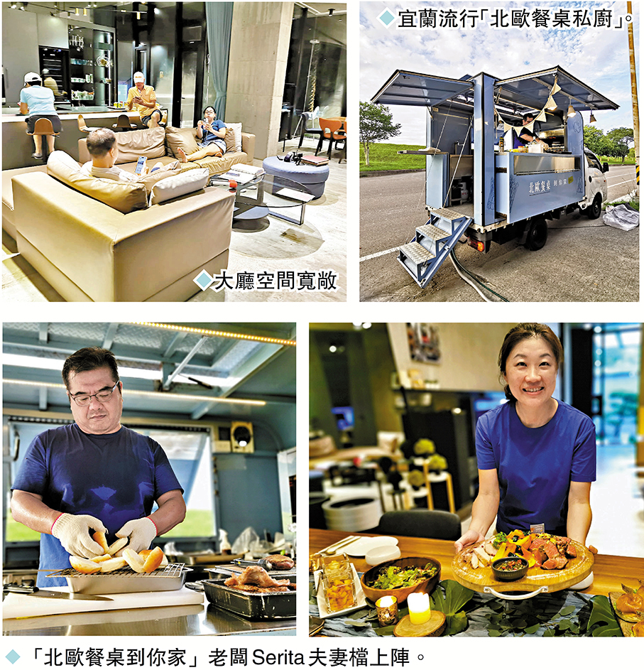 最近,民宿流行提供新餐飲服務,如果有需要可以幫你叫「北歐餐桌到你家」服務,民宿能吃到星級水準的美食。本來「北歐餐桌到你家」是一間餐廳,後來因疫情致店舖生意不佳,於是老闆決定轉做流動餐廳把廚房搬到民宿門口,為食客度身訂做私房菜,想不到生意不錯,決定轉營流動餐廳車,除煮食還專門幫手布置餐桌,很有儀式感,每道菜煮好熱辣辣地即時送上,如貴賓式的享受,讓大家住在這兒也有超級尊貴的體驗。其實流動餐車老闆夫婦都是專業人士, IT人丈夫放工後便立即來幫手做大廚, 夫妻檔上陣, 甜蜜滿瀉。
