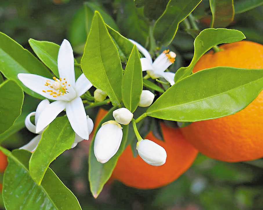 苦橙在芳療植物中很特別,在同一植物有三個部位都有芳香分子:果實、花朵與葉片。甜橙、橙花、苦橙葉也是香氣的經典搭配,有着甜橙的輕鬆愉悅、橙花的優雅純潔、苦橙葉的通達人情,幫助我們面對世事仍能保有從容不迫的彈性。