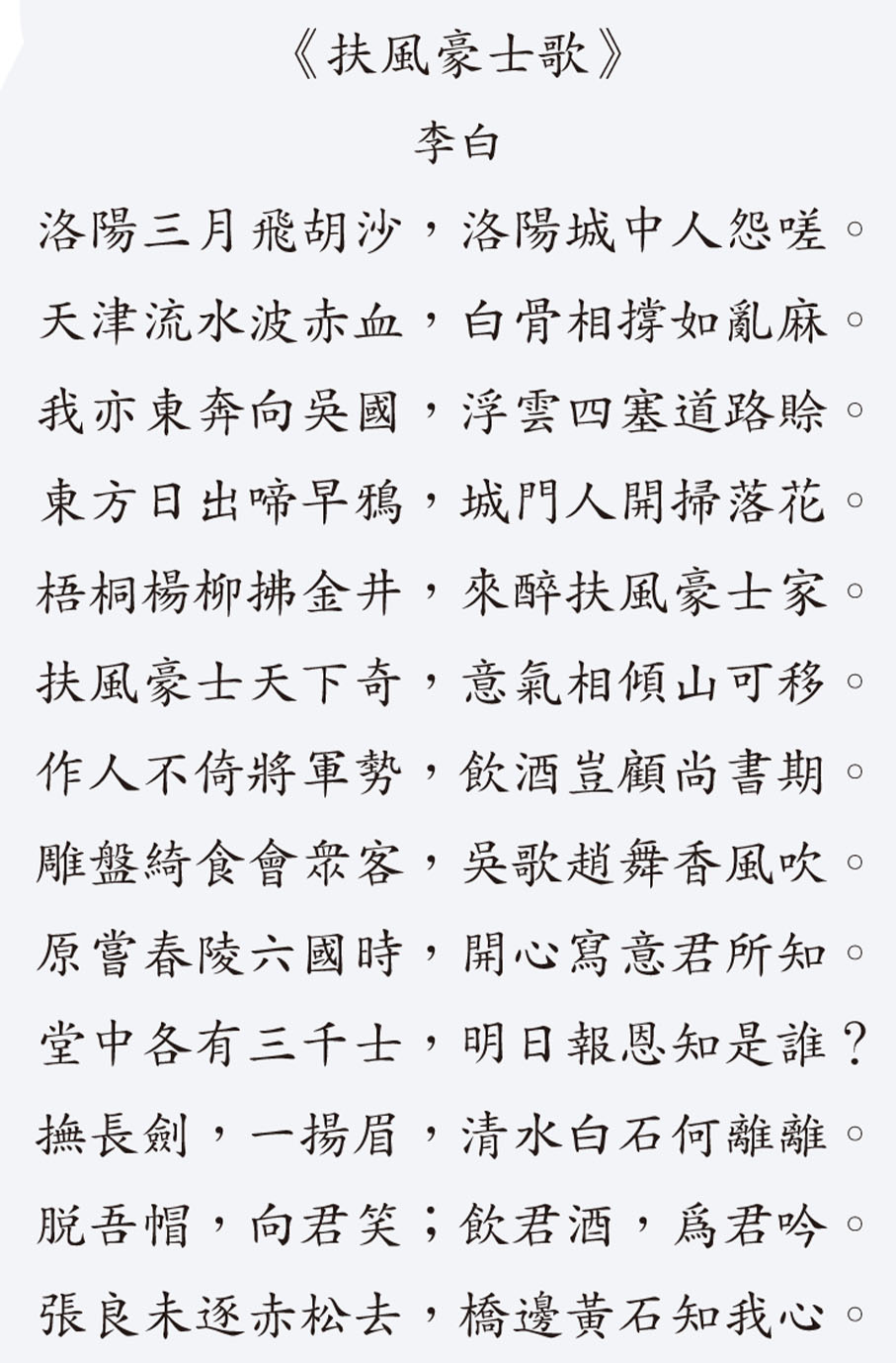 扶風豪士天下奇,意氣相傾山可移。