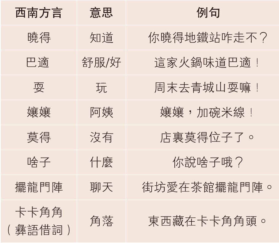 3. 詞彙生動接地氣:比如「擺龍門陣」=聊天、「巴適」=舒服。