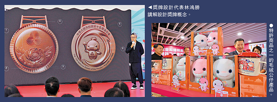 全運會香港賽區官方特許商品發布會昨日舉行,十五運會及殘特奧會廣東賽區執行委員會市場開發部副部長劉效臣、中央政府駐港聯絡辦宣傳文體部體育處處長朱劍平、十五運會和殘特奧會香港特別行政區代表團籌備委員會主席霍震霆等出席(見另稿)。