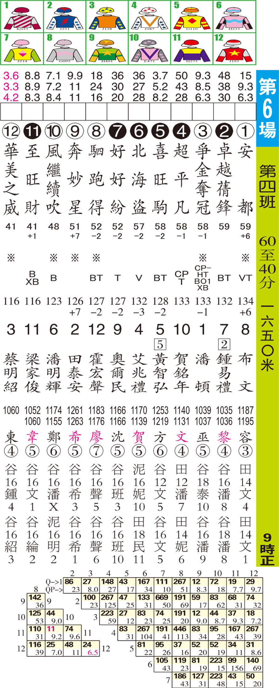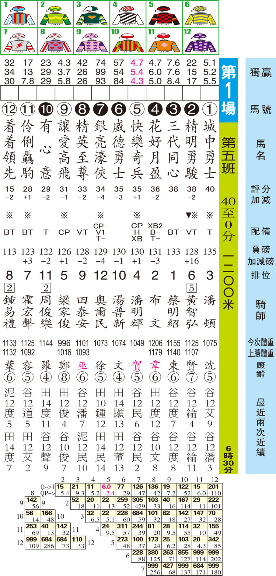 紅色馬名為補入馬匹。紅色騎師名為易配騎師。