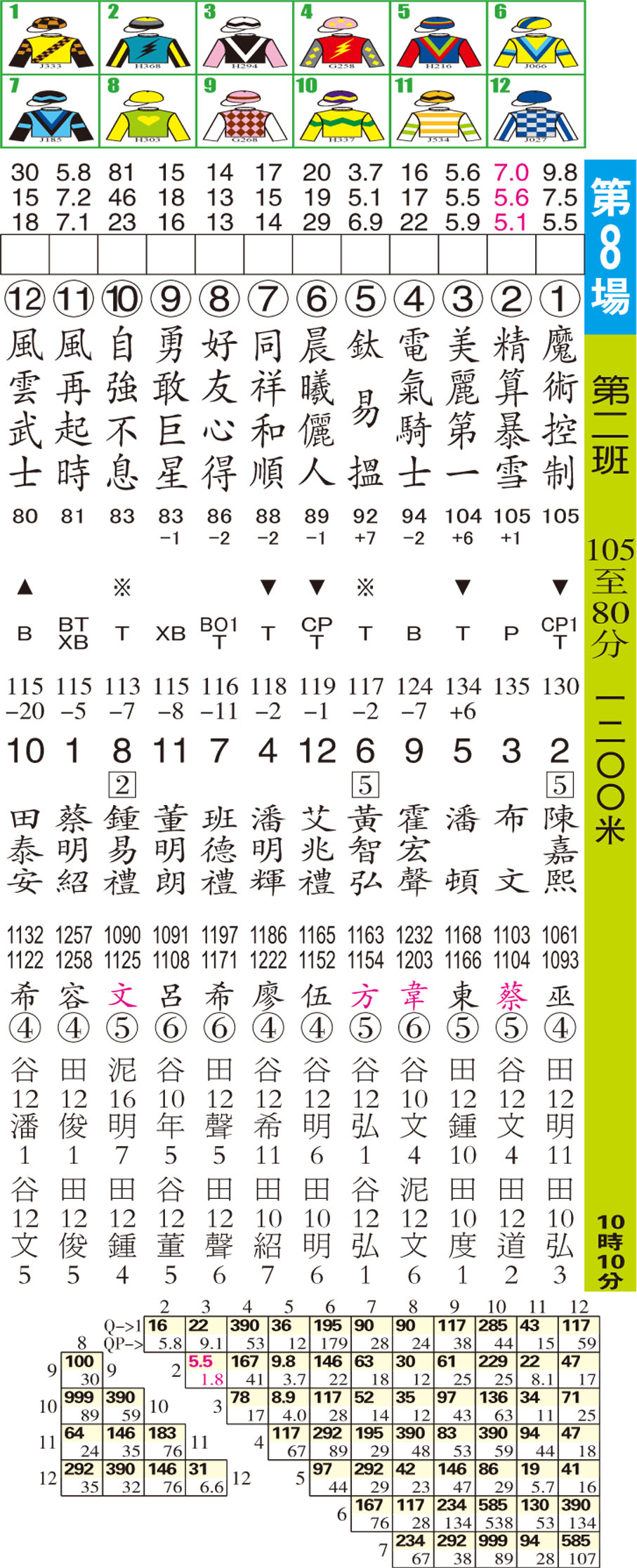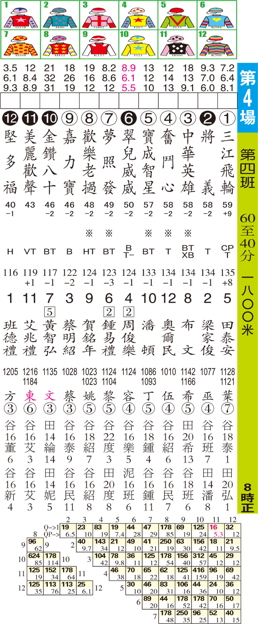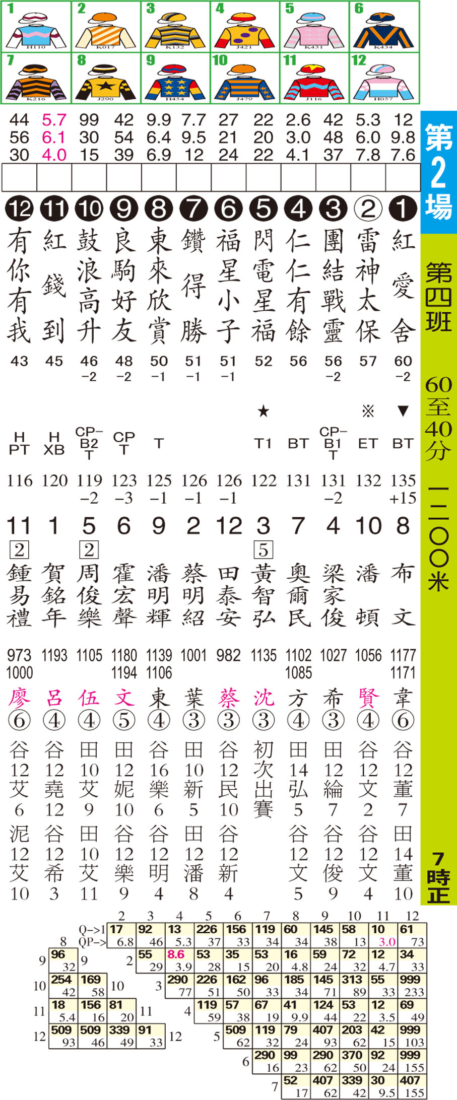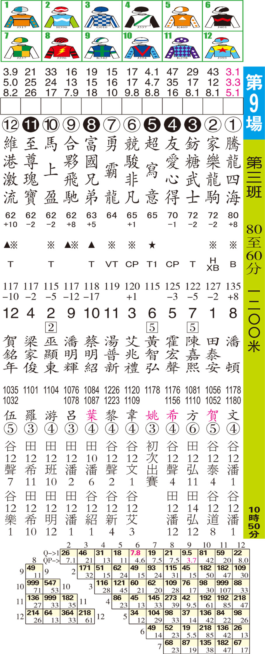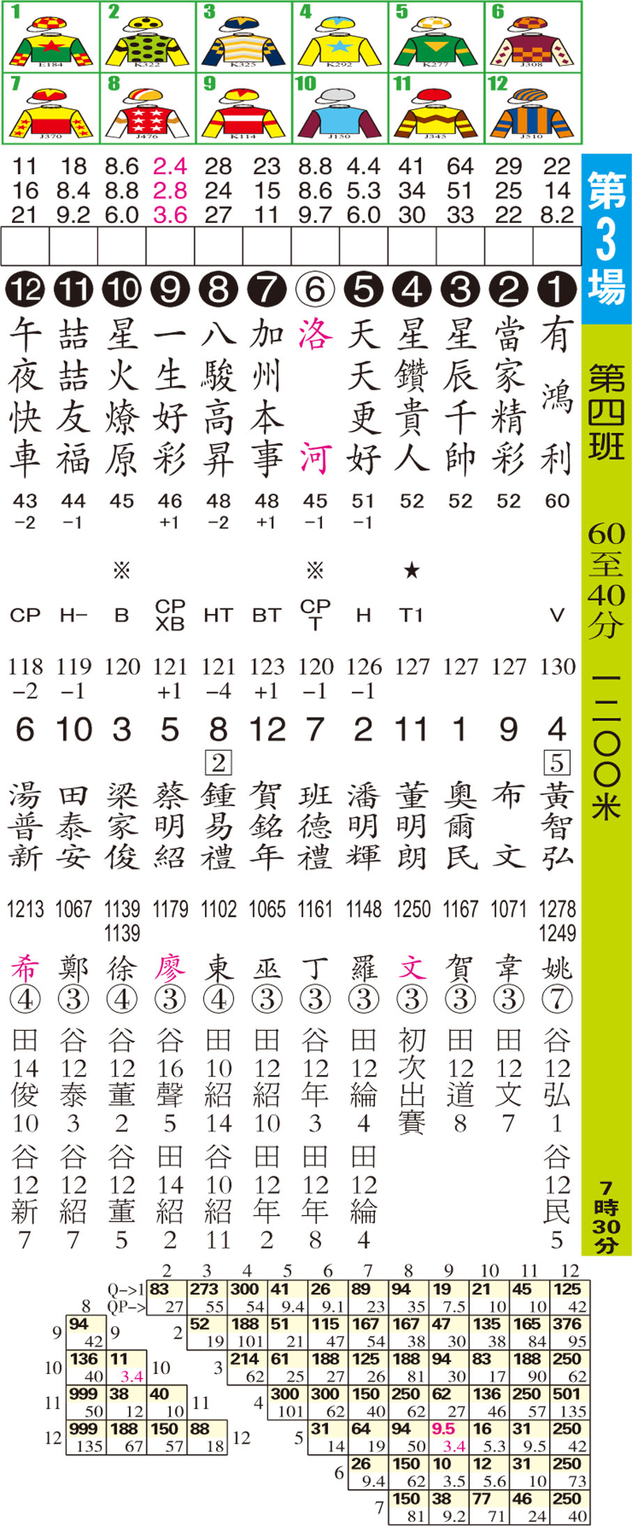 廄房紅色表示自上賽後在從化訓練出賽馬。