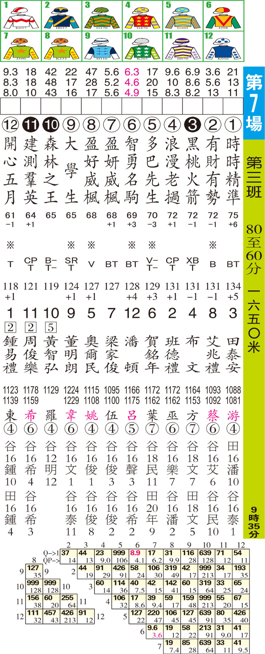 黑色馬號❶為有保護權出賽。有※為王牌馬。