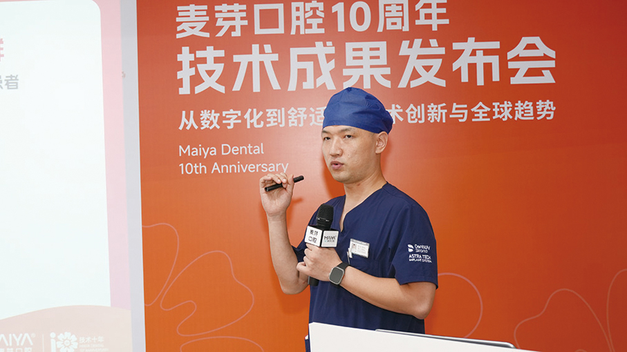 「曾有位93歲的老人,因長期佩戴活動假牙導致牙槽骨嚴重萎縮,傳統種植方案被判『不可行』。我們通過複雜骨增量技術結合高齡種植方案,最終為他重建了全口咀嚼功能。」發布會上,麥芽口腔種植專業委員會主任委員、深圳麥芽口腔醫院院長田忠奇展示的病例影像,讓現場觀眾直觀感受到技術突破的力量。