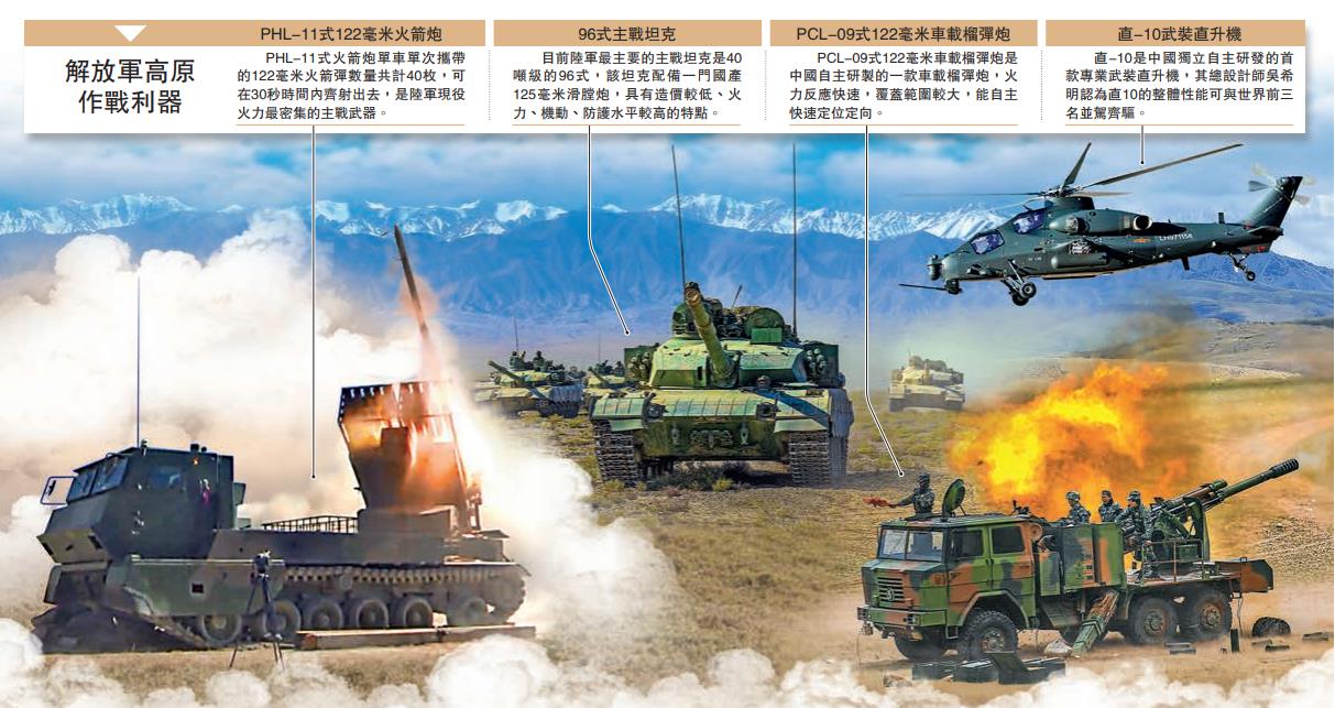 此次演習中的許多裝備是首次列裝高原部隊,或首次進行高原條件下的實彈射擊。包括有「黑豹」之稱的15式「新輕坦」、04A步兵戰車、被譽為「神炮」的PHL-11式火箭炮、07A型自行火炮、紅箭-10反坦克導彈、紅箭-73D反坦克導彈全部亮相。