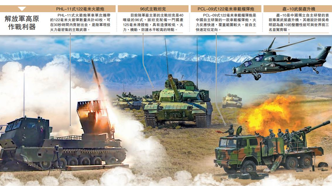 近日,西部戰區範圍內的西藏軍區、新疆軍區、第76集團軍、第77集團軍等四大陸軍勁旅,密集在高原地區展開實兵實彈演練。遠程火力、地空導彈、特種作戰、陸軍航空等多兵種在複雜地域環境進行聯訓聯戰,許多新式裝備首次進行高原條件下的實彈射擊。其中被譽為「神炮」的PHL-11式火箭炮是一型中遠程火力壓制主戰裝備,可在30秒時間內將40枚火箭彈齊射出去,是名副其實的「彈雨」式發射。