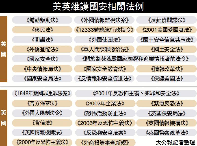 自詡「民主」、「自由」的美英,其政府在管控本國疫情不力之下,急忙向外轉移國內矛盾,充當反華急先鋒,大肆攻擊港區國安法。事實上,兩國均有諸多法律,從不同角度、在不同範疇,無縫式維護國家安全,部分法律更由一百年前沿用至今,所謂「民主」、「自由」都不得不為國家安全讓位。