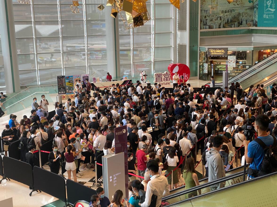 記者昨日於現場所見,不少準買家一早已到達現場,商場內每個角落都人山人海,排隊輪候登記處更大打蛇餅,為近一年來相當少見的熱鬧賣樓場面。