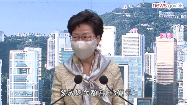 林鄭月娥當日出席行政會議前會見了傳媒。她說,該計劃亦惠及84000名自僱人士,獲發放總資助額6.3億港元。