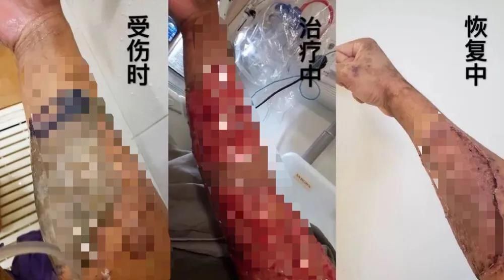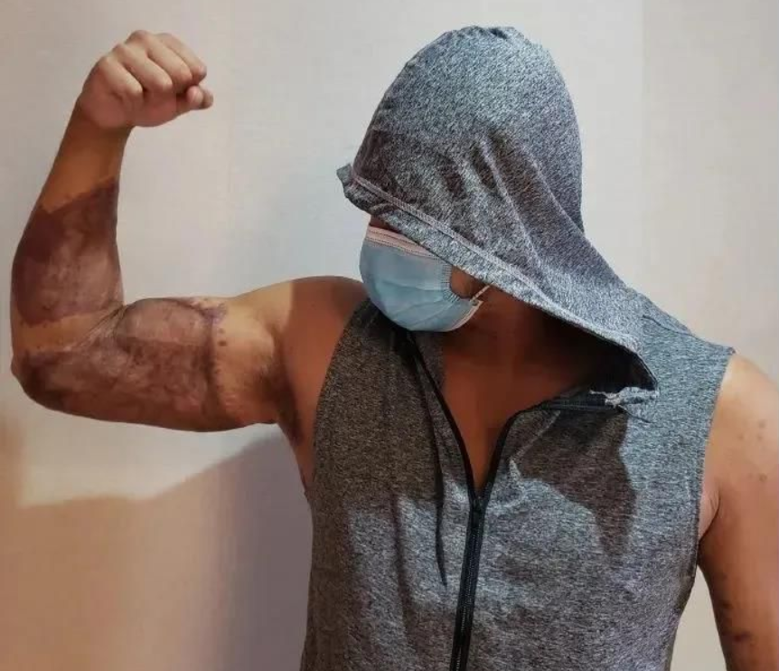 清創、植皮、拆釘,他先後經歷過3次手術。右手傷口植皮後,打上了超200顆釘子,身體狀況差到一度連生活都難以自理。