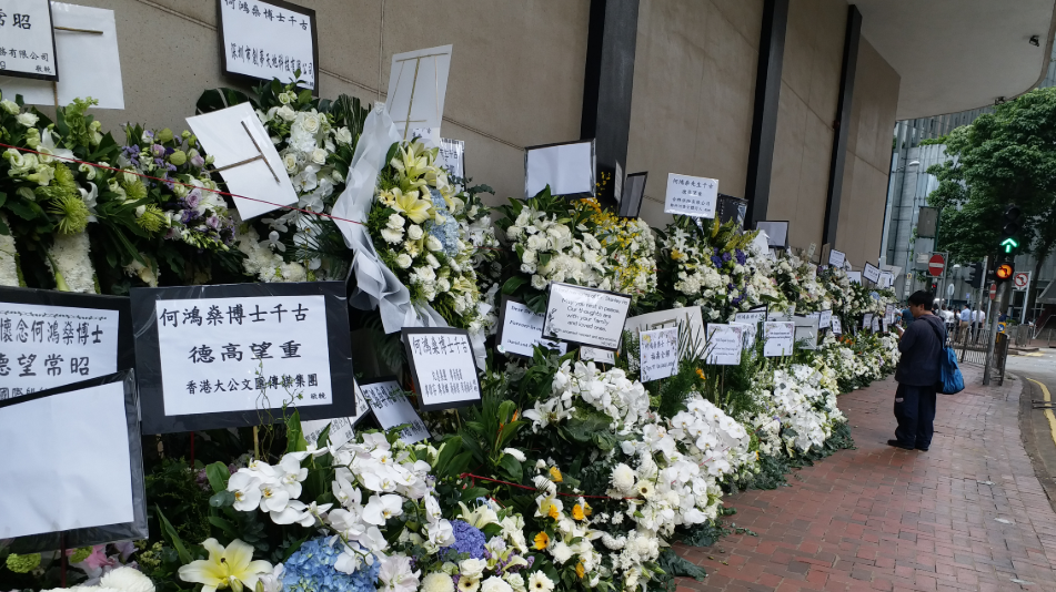 賭王何鴻燊博士於5月26日離世,享年98歲。由昨日(8日)起,何家一連三天於北角香港殯儀館為何鴻燊設靈,昨日只供親屬祭拜,今日舉行公祭,明日(10日)大殮出殯。