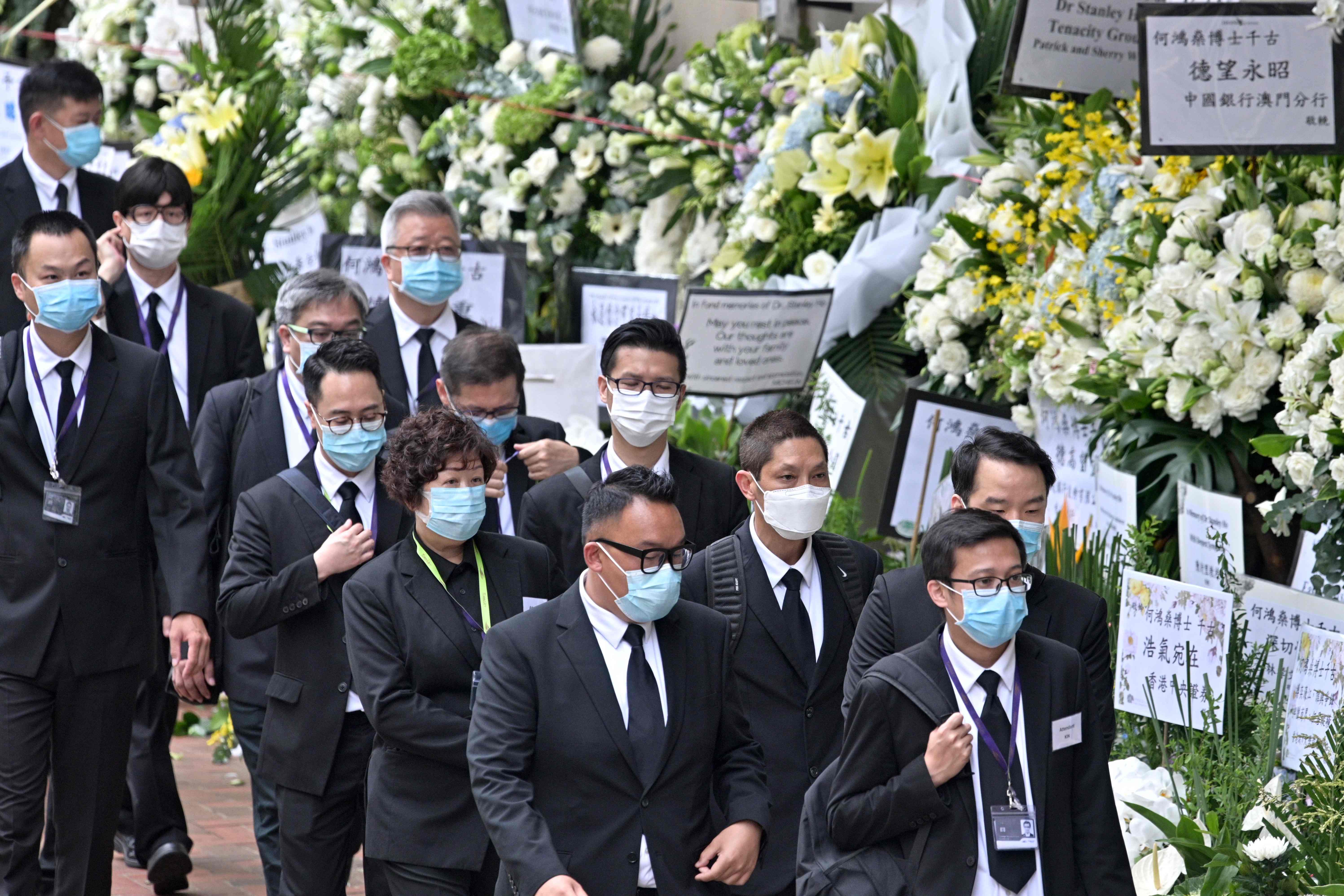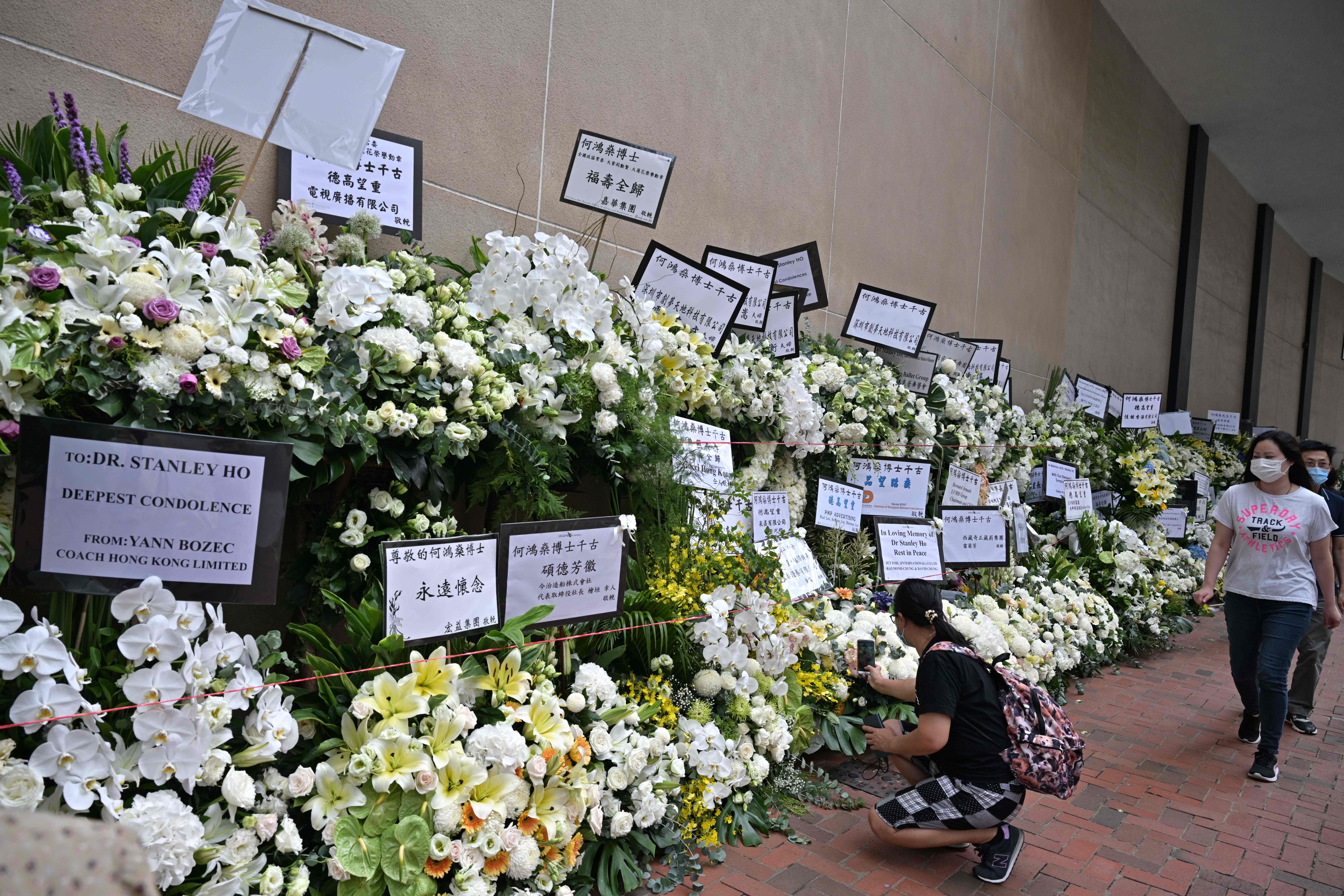 何鴻燊於5月26日逝世,享年98歲。設靈儀式由本月8日開始一連三日在香港殯儀館舉行,開放予公眾悼念。昨日下午,多名政商學界人士到場致意。外交部駐港公署特派員謝鋒,銀娛主席呂志和,匯豐亞太區行政總裁王冬勝,前律政司司長梁愛詩,前財政司司長梁錦松,前港鐵主席馬時亨,港大校長張翔、前校長徐立之,中大校長段崇智、前校長劉遵義及校董會主席梁乃鵬,公大校長黃玉山,李業廣等到場致祭。