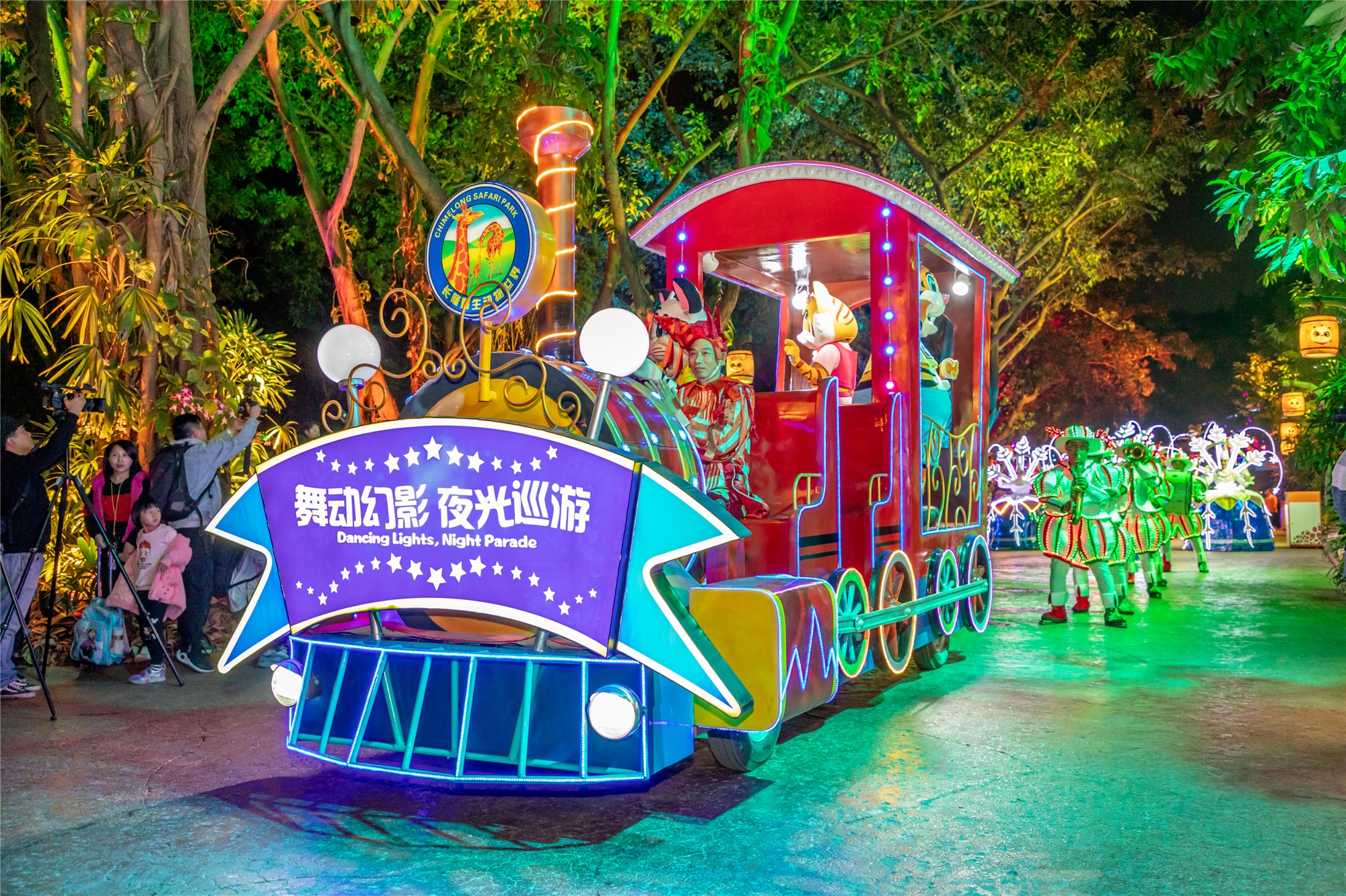 長隆野生動物世界夜場集合了全球夜遊項目種類最多的互動技術,包含了體感互動、重力感應、彩色互動、聲音互動、風壓感應、激光互動等等。在全球頂尖視覺創作團隊的支持下,夜場的「星空童話」和「幻彩雨林」兩大路線,提供給遊客多種不同體驗。其中,激光音樂谷是全世界最大的激光互動場景。據了解,夜場共使用聲光電設備接近5千台、仿真布景接近2千平方米,相關線纜總長度超過10萬米。更有35首原創配樂的試聽盛宴等待解鎖。