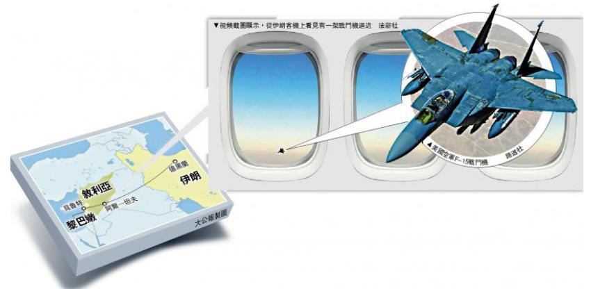 據大公報報道,伊朗馬漢航空公司一架載有150人的客機23日於敘利亞上空遭兩架美軍F-15戰機「攔截」,機長緊急調整飛行高度,飛機急墜致數名乘客受傷。伊朗強烈批評美軍行為「挑釁」,等同侵略,已向國際民航組織遞交書面抗議文件。伊朗稱美國戰機抵客機100米範圍內,美軍則稱該架戰鬥機是為了「檢查」而靠近,並保持1000米安全距離。