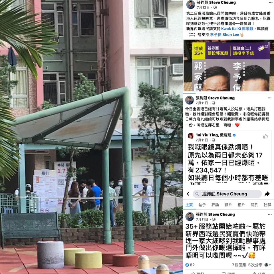 據了解,早前泛暴派7月初大肆宣傳所謂「初選」時,不少網上的宣傳海報都列出張鈞翹葵青區荔枝角灣華荔邨的辦事處作為票站,而投票當日亦有人在場投票,並被途人拍攝現場情況,張鈞翹亦將當日的情況上載至自己的FACEBOOK上。