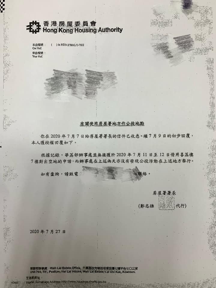 「不少街坊爆料相片可見公投當日華荔邨區議員確實利用了房屋署位置,有關議員facebook及公投宣傳品都都呼籲街坊到上址投票。證據就放在眼前,到底是房屋署處於平衡時空,抑或有意放生?」朱麗玲質疑房屋署證據確信的情況下,繼續包庇泛暴議員。