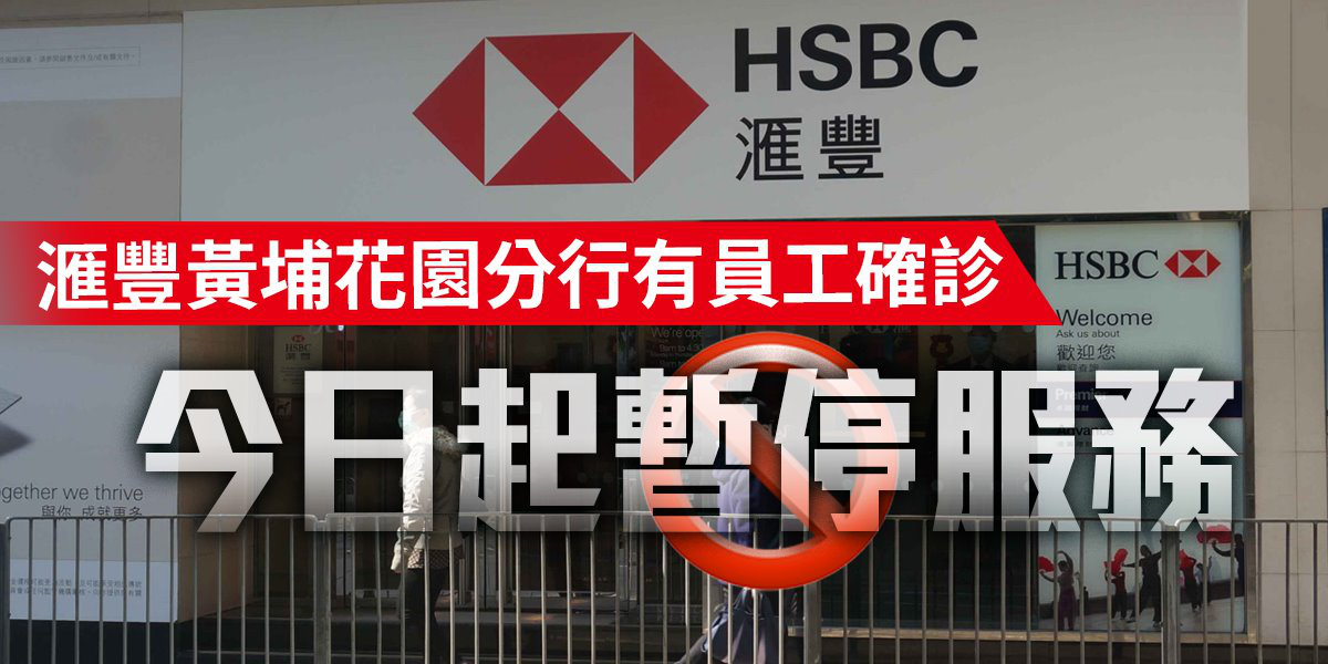 據大公文匯全媒體報道,滙豐銀行公布,黃埔花園分行及卓越理財中心(九龍黃埔花園第4期商場地下G6, 6A及G7號舖)有一名員工昨日(30日)確診,分行由今日(31日)起暫停服務並進行深層清潔及消毒,直至另行通知。