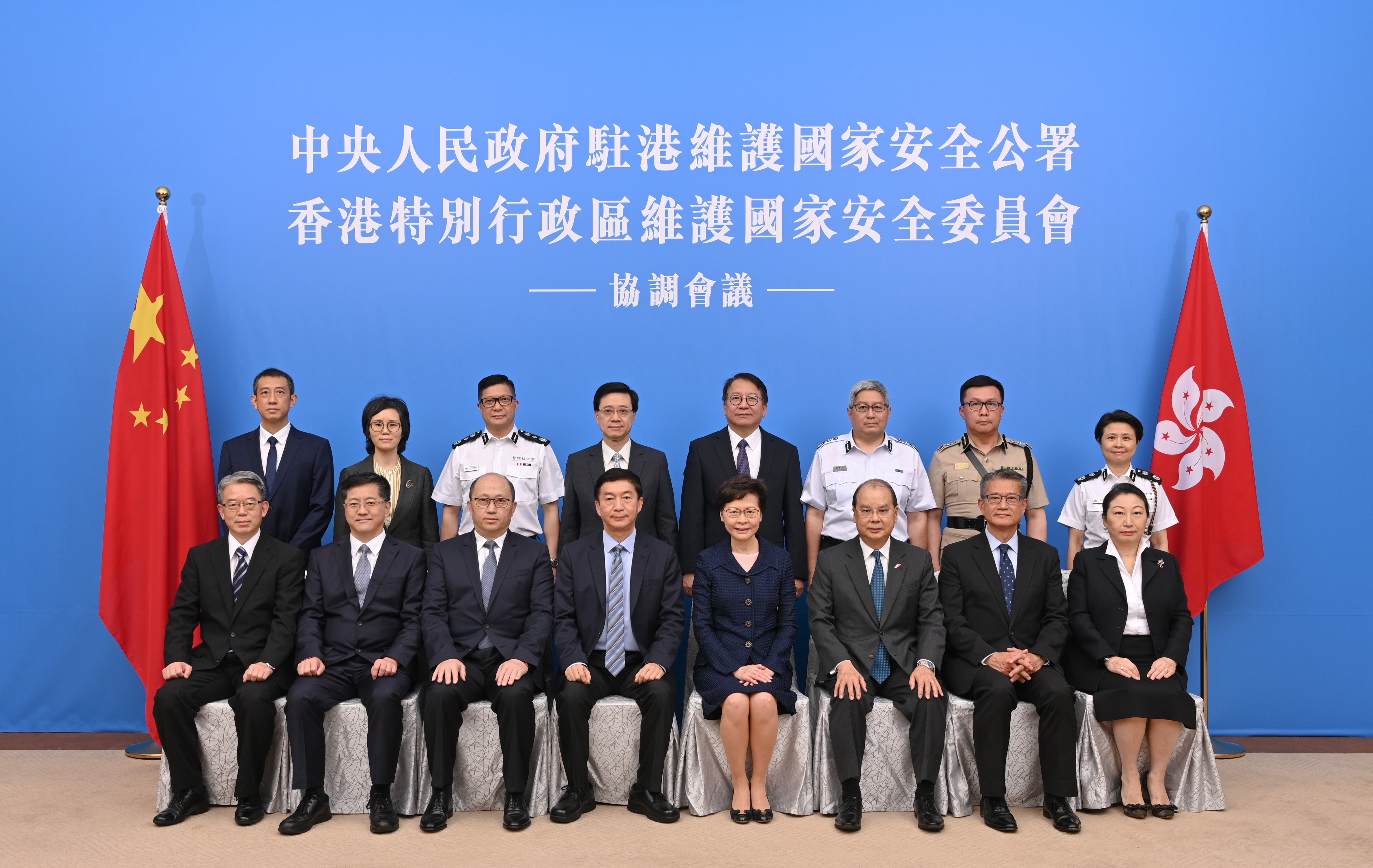 香港特區國安委主席、行政長官林鄭月娥率領全體香港特區國安委成員出席會議;其他出席人士包括由中央人民政府指派的香港特區國安委國家安全事務顧問駱惠寧、駐港國安公署署長鄭雁雄、駐港國安公署副署長李江舟和孫青野。