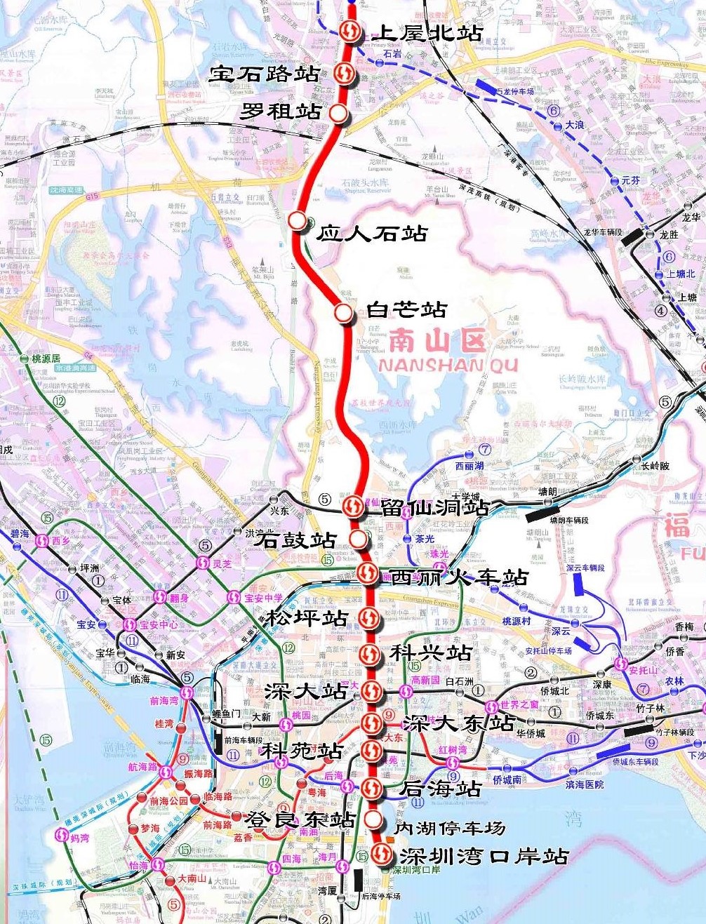 深圳市軌道交通13號綫工程是支持後海中心、留仙洞總部基地、光明新城等重點建設地區發展的中部地區南北向骨幹線。綫路南起深圳灣口岸站,北至上屋北站,全長約22.4公里,設站16座,採用地下敷設方式,初步預計將於2023年投入服務。