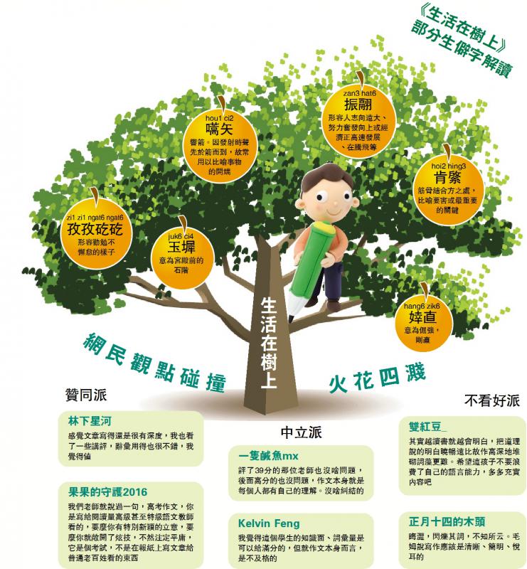 (大公報記者 俞晝)「嚆矢、振翮、孜孜矻矻、祓魅」,「海德格爾、卡爾維諾、麥金太爾」……冷門生僻的詞語,超出一般高中生認識範圍的哲學家,它們出現在浙江高考滿分作文《生活在樹上》。到底是曲高和寡還是實至名歸?該作文一經公布就引發熱議,質疑的一方認為,文章實際內容空洞,主題思想不清晰,令人費解;而支持的一方覺得,文章用詞典雅,作者個性化表達,是一篇佳作。