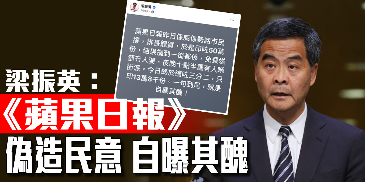 梁振英又爆料,稱《蘋果日報》今日縮印三分之二,只有13萬8千份。