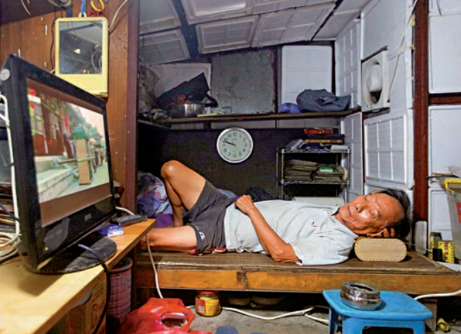「係咁樣,上到去,轉身,再坐低,先至唔會撞頭。」在深水埗一幢舊樓,天台鐵皮劏房上蓋再僭建的閣樓床位,「樓底」高約一米,租戶秋哥獨居約30年,早已習慣行完九層樓梯後,再爬貓梯回家。他稱,房間由自己苦心經營,業主從來懶理他的死活,「千零蚊租,(業主)點會理你?乜都要自己搞掂。」