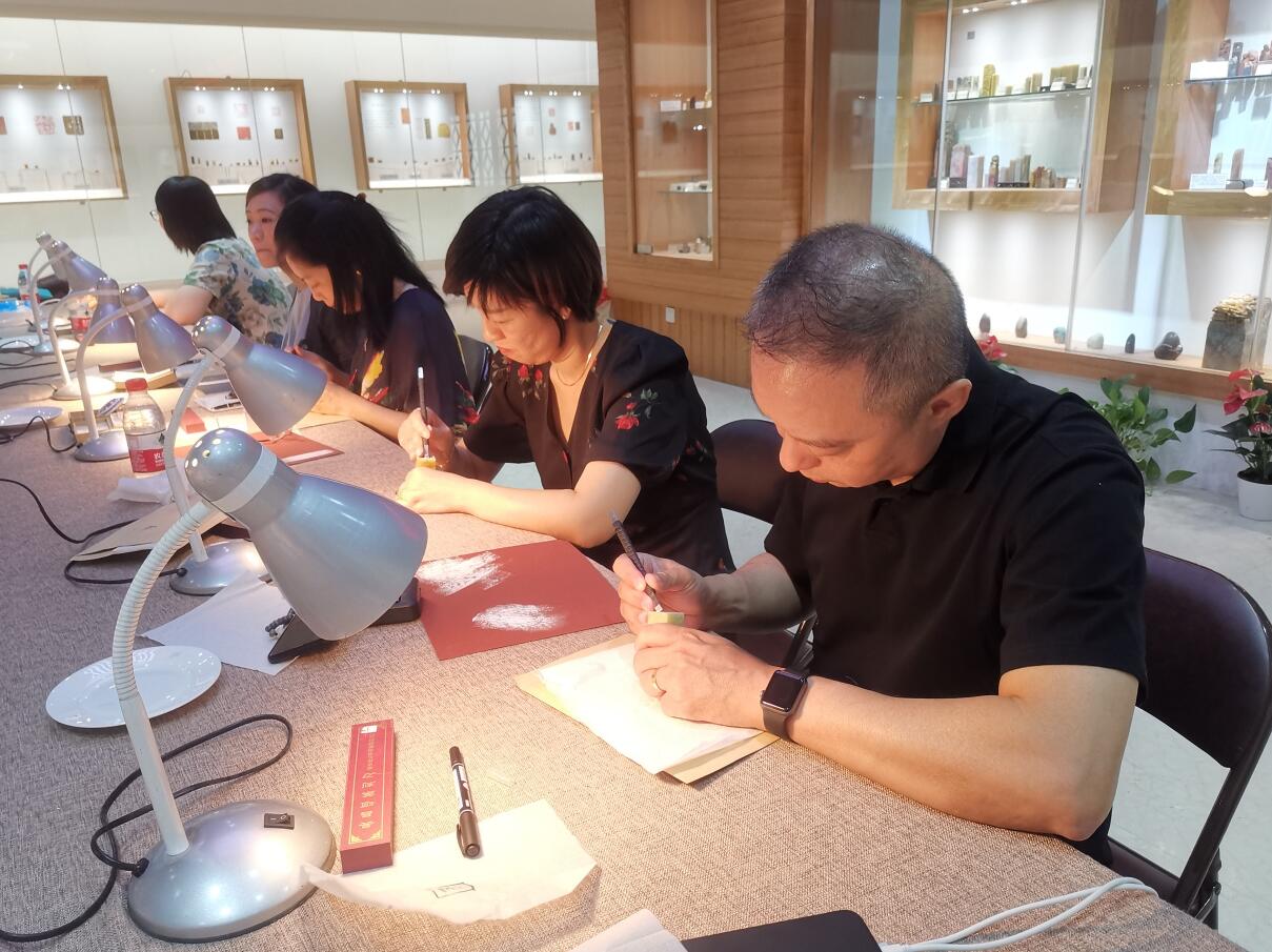 活動期間,學員們還拿起了刻刀,在印石上進行了自由創作。看似簡簡單單的工具,實際操作起來卻並不容易,學員們一邊認真細心摸索技巧,一邊還不時向老師請教指導。最終,每位學員都完成了自己的作品,並進行了拓印,留作紀念。