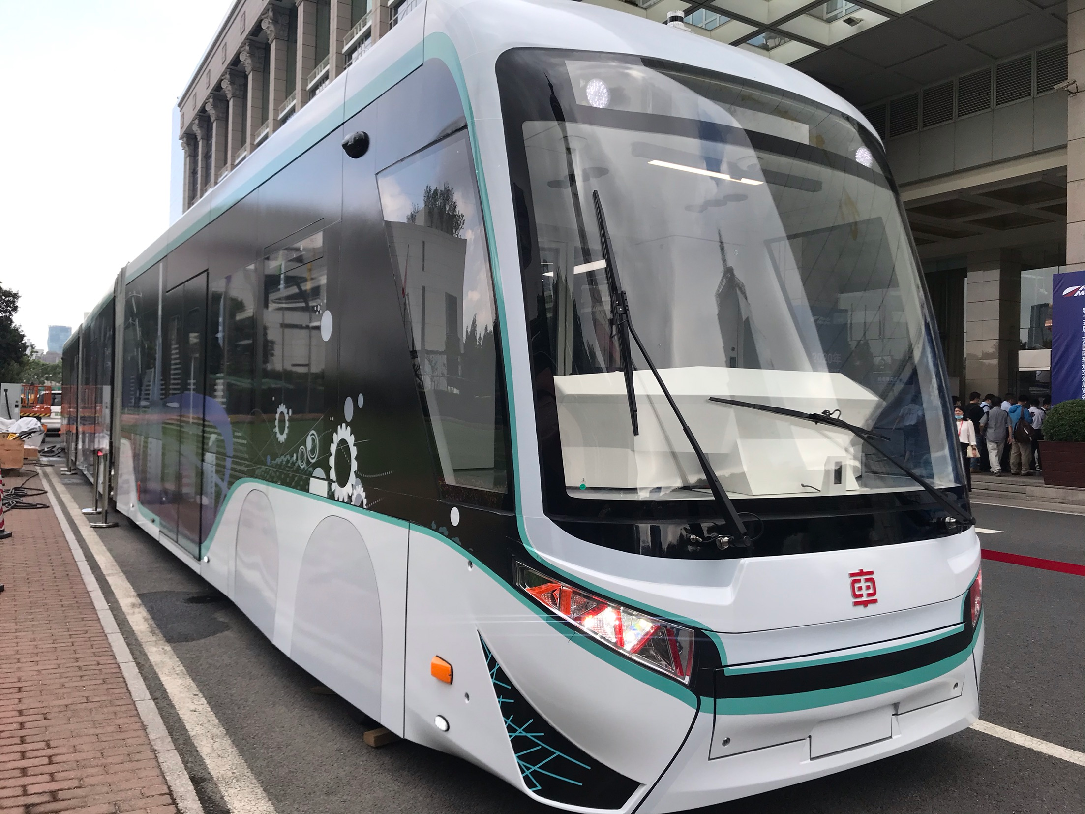 據悉,這列數字軌道膠輪電車是在傳統低地板有軌電車基礎上重新改進設計的。列車採用以電磁標記為主,視覺導航和衛星導航為輔的數字化軌道導向方式。車輛通過車載傳感器讀取道路路面上連續鋪設的磁釘編碼信息,可實時準確定位車輛,並控制各個車輪按線路走向轉動。
