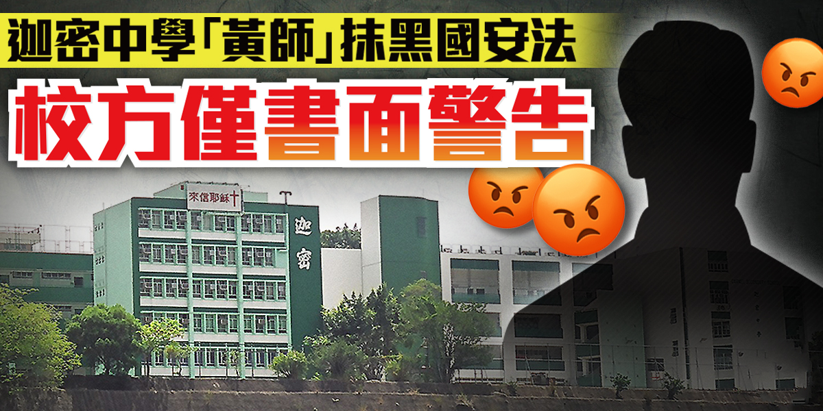 據大公文匯全媒體報道,日前迦密中學學生家長陳先生(化名)向記者爆料,迦密中學教師阮洪慧芬,在中五中文課堂學生群組中,發布涉嫌抹黑香港國安法、諷刺國家領導人的文章。迦密中學今日(15日)回應記者,校方在調查後證實該事,向該教師發出書面警告。教育局則表示,教師須秉持專業態度和操守,審慎選取及使用合適的教學材料,以客觀、理性和持平的態度指導學生從多角度思考,絕不能向學生灌輸政治意見。