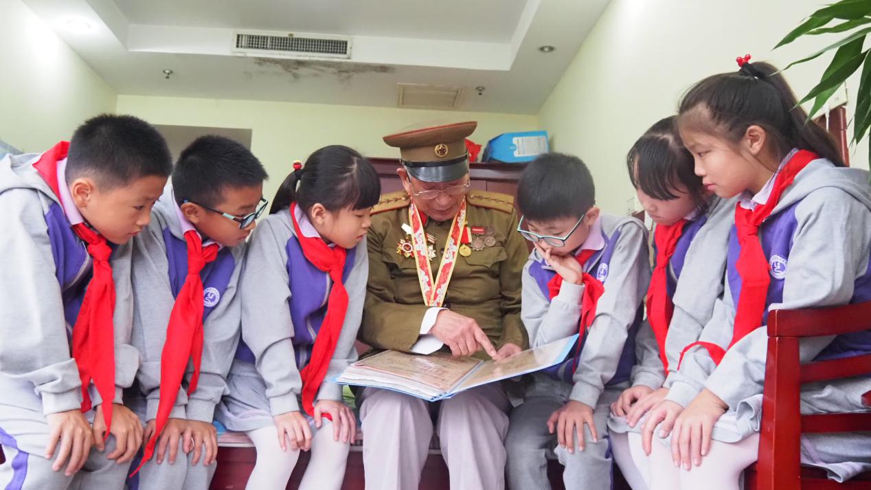 在瑤海區靜安養親苑,少先隊員們前來探望慰問參與抗日戰爭的老紅軍們,並為他們送去慰問品和誠摯的問候。1931年9月18日,「九一八」事變爆發。日本悍然發動侵華戰爭,所到之處屍橫遍野、哀嚎遍地,3500多萬同胞傷亡。日軍犯下的罪行罄竹難書!92歲的章爺爺回憶往昔,內心久久不能平靜,並深情地拿出他珍藏的書籍、證書和珍貴圖片,向小少先隊員們娓娓道述革命歷史,並告訴他們,落後就要挨打,要努力學習、努力發展才能強大。