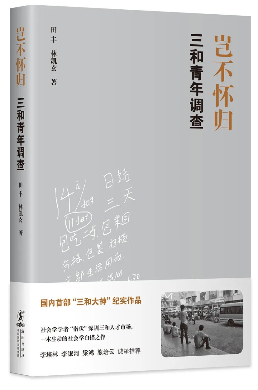 最近出版的《豈不懷歸》是第一部針對「三和青年」的調查報告。兩位學者,田豐和他的碩士研究生林凱玄,試圖盡可能掙脫理論束縛,不帶預設,以白描的手法還原真實的「三和青年」。這項研究沒有申請任何科研經費,出版過程也是歷經磨難。經過反覆努力,雖然損失了一部分內容,這本書還是在成稿17個月以後出版了。出版至今,《豈不懷歸》已經加印兩次,在當當、京東等網絡圖書平台上的銷量都名列前茅。