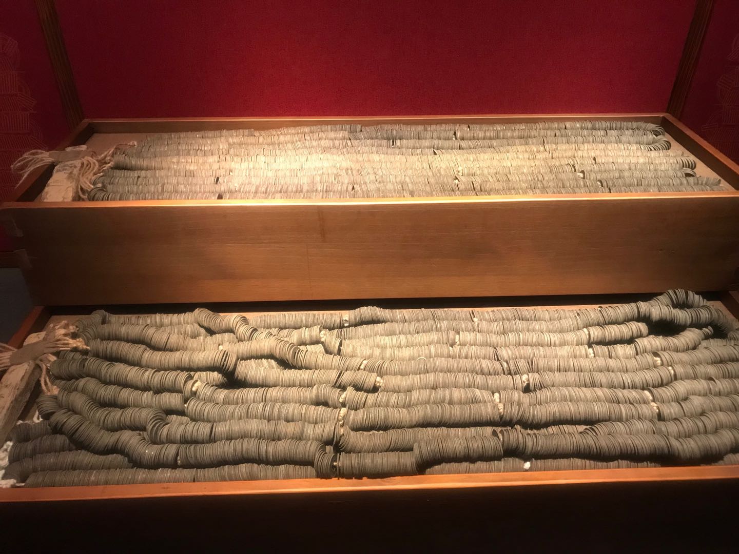 大量珍貴文物首次對外展出,包括「南昌」銘文青銅燈,「元康」、「海昏侯夫人」奏牘,「海昏侯家錢五千」封泥匣,套箱提取的五銖錢等等,戰國蟠螭紋青銅缶更是首次重磅亮相。