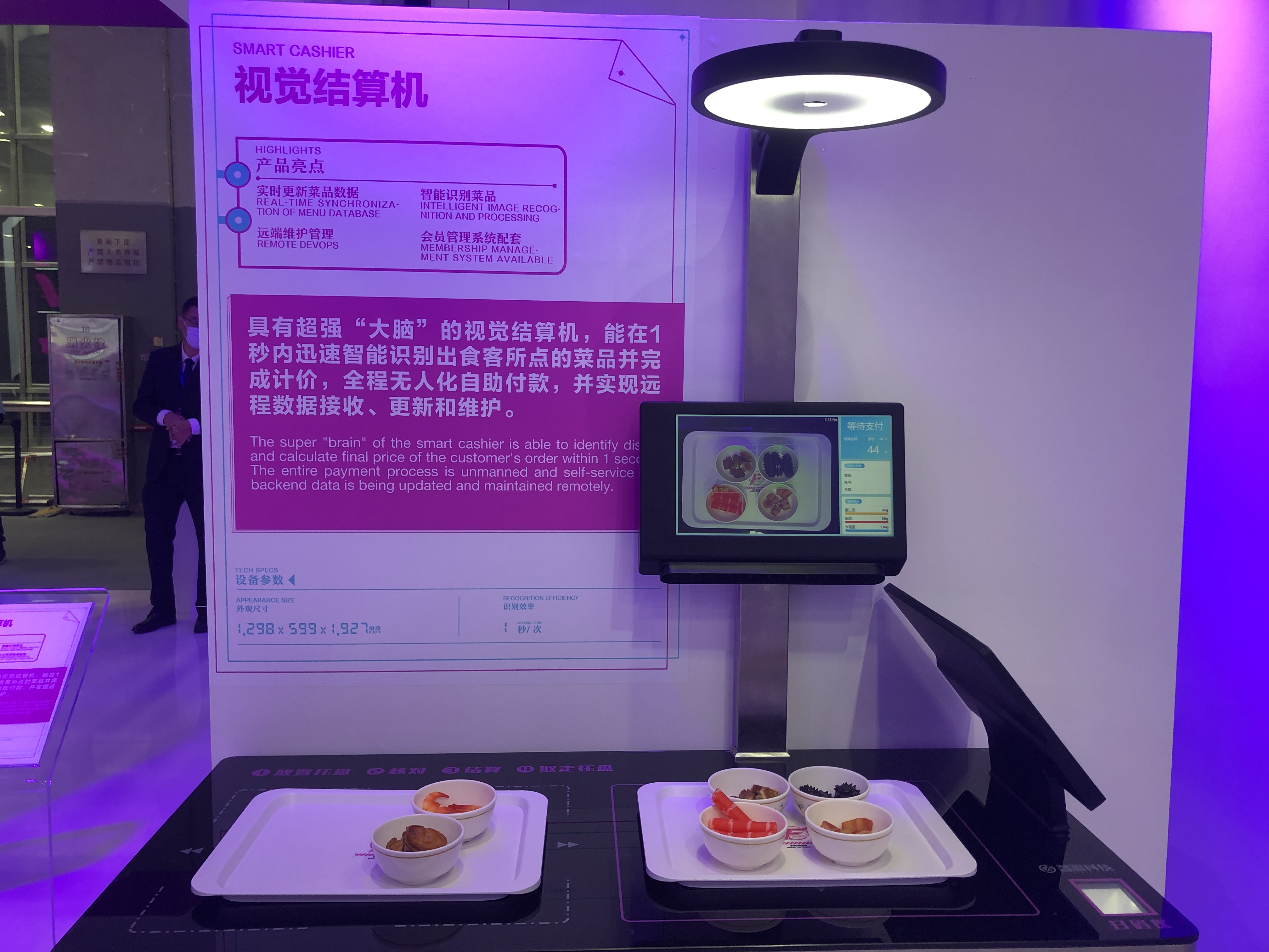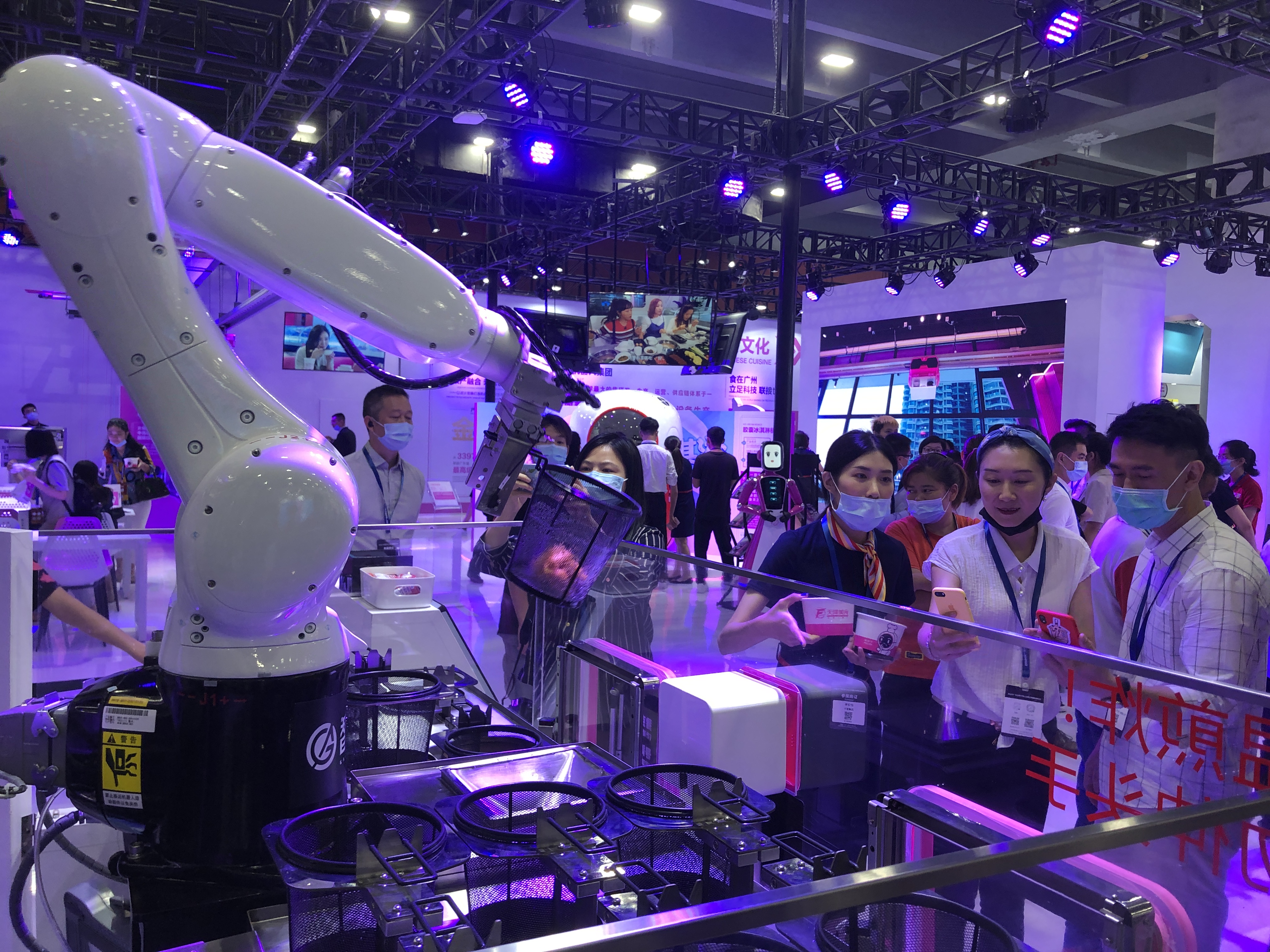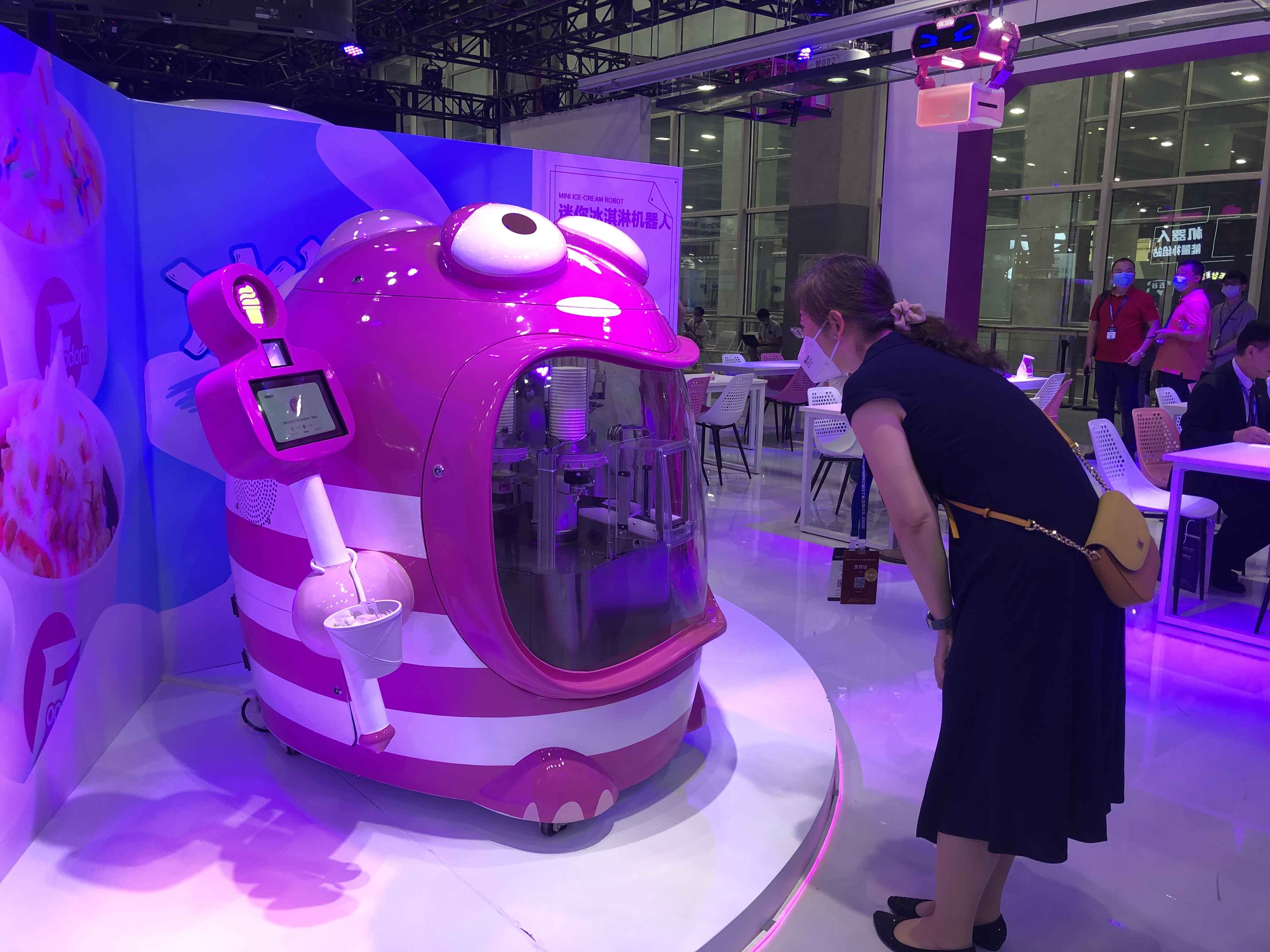 五穀豆漿機器人、棉花糖機器人、新款冰淇淋機器人等多款機器人均為首次亮相。而集裝箱漢堡機器人,其出餐效率達每個漢堡僅需20秒,比當前快餐行業巨頭的出餐效率快了近1倍。展會期間,16000份各類機器人現場烹飪製作冰淇淋、咖啡、小吃、漢堡、棉花糖等美食,供觀展者免費體驗,讓人大呼過癮。