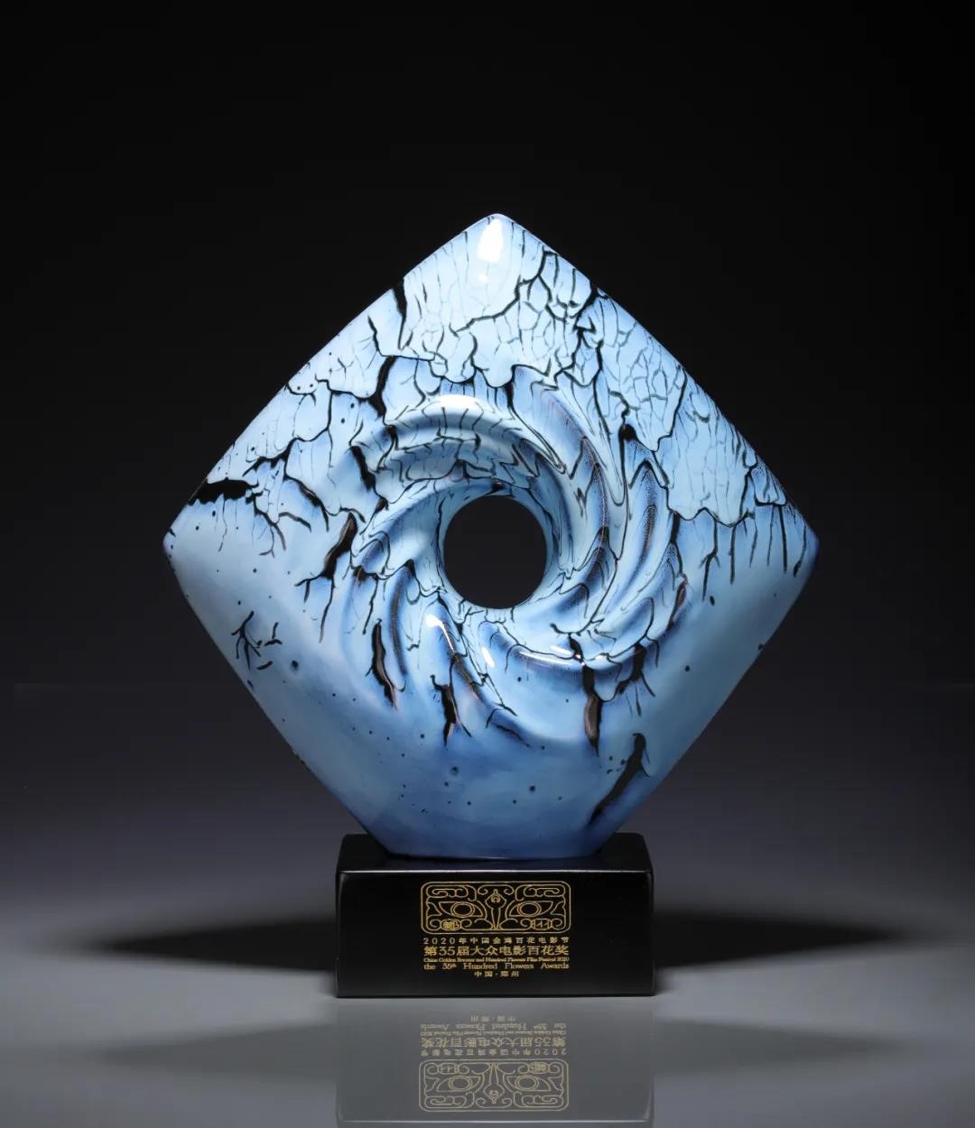 且聽《源》之說道:「圓中有方,方中有圓」的設計,蘊藏着中華文明的密碼,凝聚着中國傳統哲學的魅力;旋轉的九條曲線,是九曲黃河的象徵,是九九歸真的智慧;線條虛實融合,由內向外散發,加之鈞釉的自然變,如光影蔓延,器物中心,似花非花,代表着中國電影的未來繁花似錦,也代表着中原大地花團錦簇的「鄭」中心,本屆電影節的東道主鄭州展開臂膀,喜迎八方賓朋。