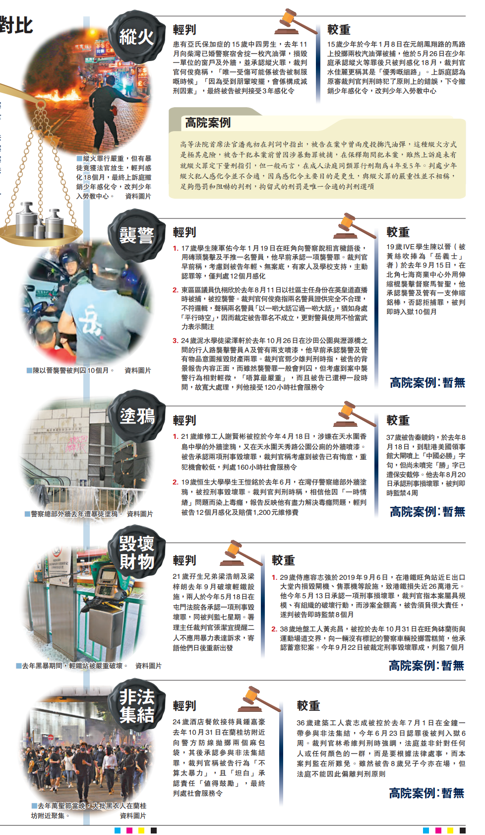 (香港文匯報記者 杜思文)雖然量刑是法官的專業,但近期眾多與修例風波相關案件的刑期浮動相當大,引起不少市民的質疑及不滿。律政司已分別就多宗判刑明顯過輕的案件向高等法院上訴覆核刑期。早前,高等法院上訴庭就裁判官水佳麗判處一名15歲縱火犯非監禁式懲罰,是犯了原則性錯誤。