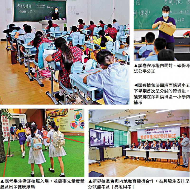 (大公報記者 楊天智)漫長的疫假結束,明日起中小學及幼稚園恢復面授課堂,惟跨境學童仍無法回港上課,當中以考呈分試的跨境生影響最大。新界校長會與內地鯨帆教育機構(深圳校區)合作,覓得深圳一所小學作為場地,為這些跨境生舉行「異地同考」及補考升中呈分試。目前已有五間學校約130名考生完成相關安排,其中四校逾百人屬補考。按照先導計劃,接下來還會有三間學校進行「異地同考」。