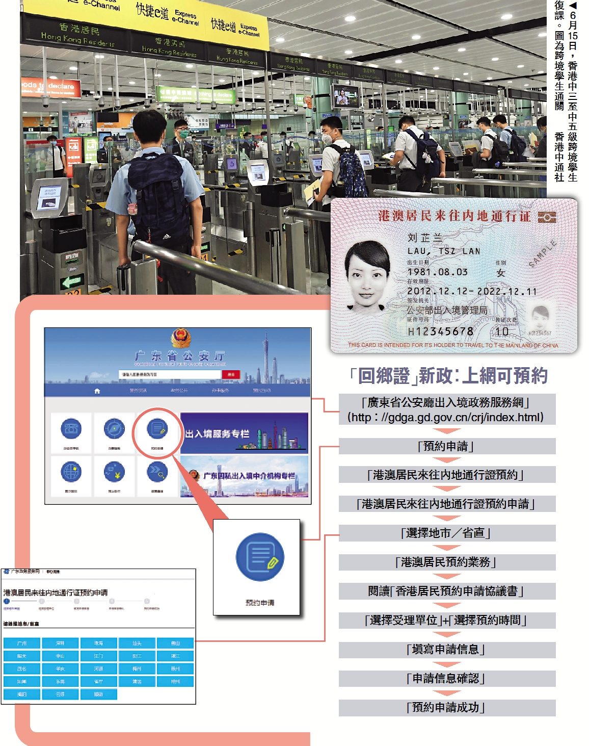 (大公報記者 趙一存北京報道)中國國家出入境管理局28日在京通報港澳居民來往內地通行證(即「回鄉證」)換發補發新政。據介紹,自2020年10月10日起,港澳居民首次可在內地申請換發補發港澳居民來往內地通行證,即港澳居民可向全國任一縣級以上公安機關出入境管理部門申請,無需返回港澳地區,在申請條件不變、申辦手續不變、審批要求不變的基礎上,將為港澳居民帶來便利。另外,申辦手續將一次性辦結,辦證時間縮短為7個工作日,更加高效便捷。