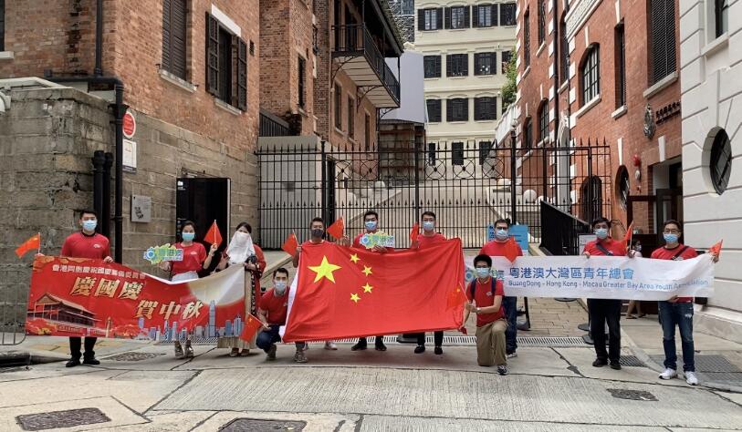 本次活動由粵港澳大灣區青年總會主席吳學明牽頭及召集。早上9時半,十多名青年齊集港島區中環,在大館、終審法院、大會堂多個地標建築物前揮舞著五星紅旗,並且高唱國歌、《我和我的祖國》,以表達對祖國的熱愛以及祖國71周年國慶的祝福。活動吸引了沿途市民的駐足觀看和歡聲喝彩,更有人主動積極和熱情地加入,一同歌唱。參與者表示,能夠在國慶日和中秋節兩大節日,以如此新穎的方式慶祝,別具意義。同時,為身為中國人感到十分自豪,祝願祖國繼續繁榮富強,香港在祖國強力後盾的支持下定必欣欣向榮。