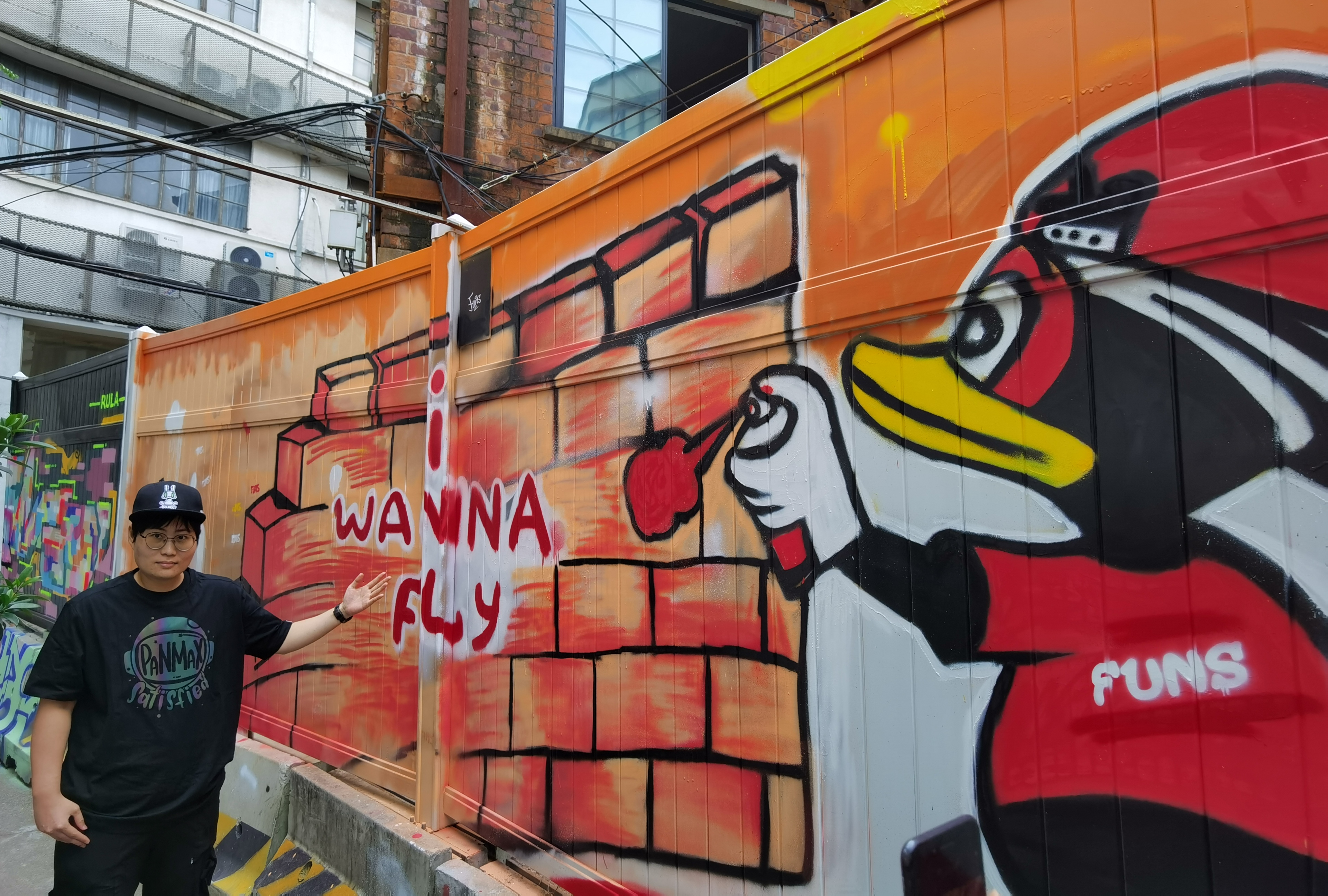 來到上海,除了開創事業新天地,業餘也找到了更多志同道合的夥伴。以熟悉的莫乾山路為起點,她跟隨大陸的畫友們還到過北京、武漢、寧波等地交流創作,也曾應邀開設講座介紹「塗鴉」藝術史和創作心得。劉慶元說,大陸同行的眼光和水準已經與國際接軌,也希望能夠與大家攜手,為中國的「塗鴉」藝術走向世界努力。這次她特地在牆上創作了一隻等待飛翔的鴨子,她說,這也代表了他們年輕藝術家的心情,儘管沒有翅膀也堅信可以飛翔。