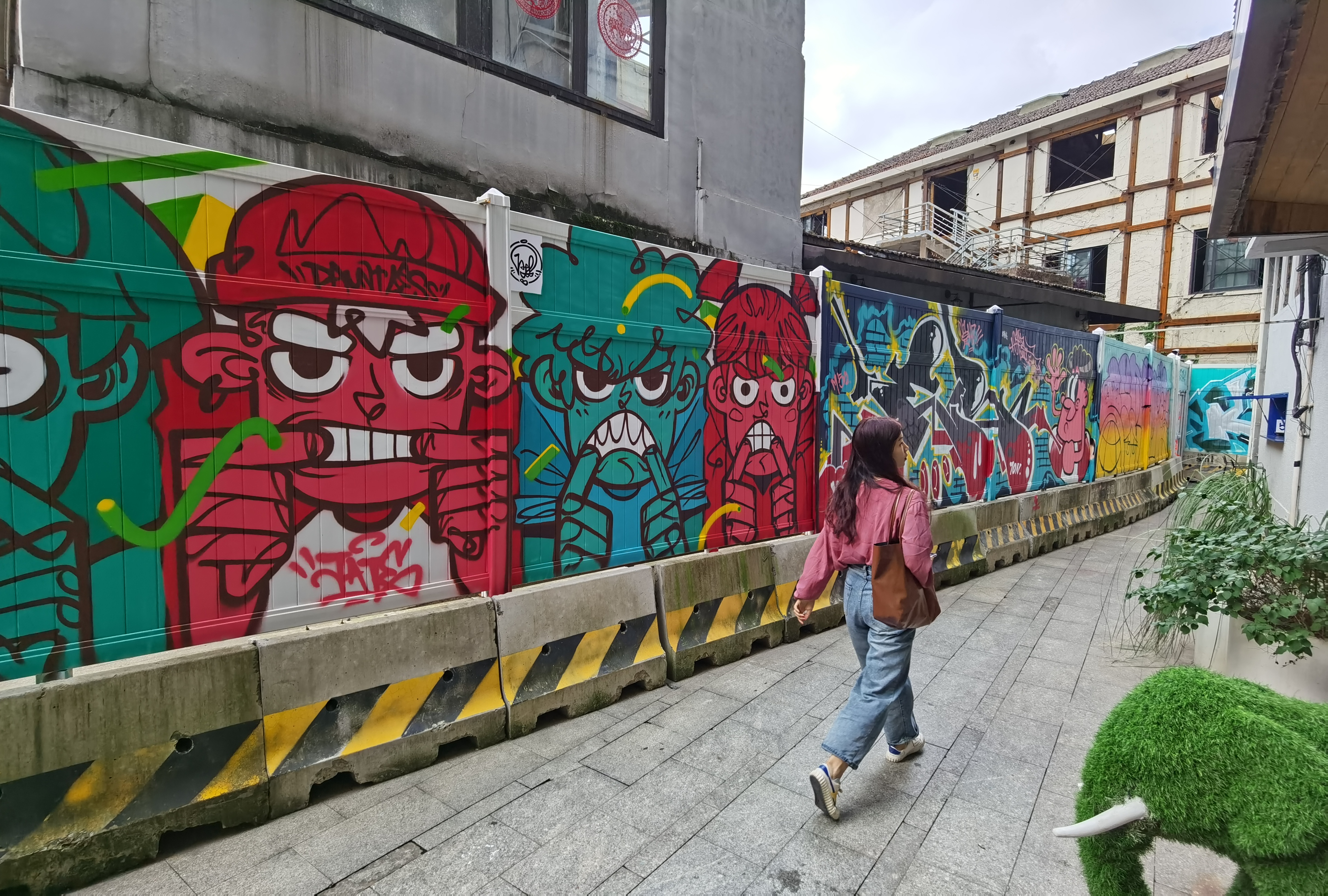 記者了解到,喜愛在莫乾山一帶創作的藝術家中,也不乏來自港澳台的年輕人。在這次首批創作活動中,藝術家劉慶元就來自台灣。這位畢業於台灣萬能科大商業設計系的藝術家跟隨台企來滬工作已經五年。她告訴記者,學生時代時就對街頭塗鴉有着濃厚的興趣,覺得「塗鴉是可以玩一輩子的」。