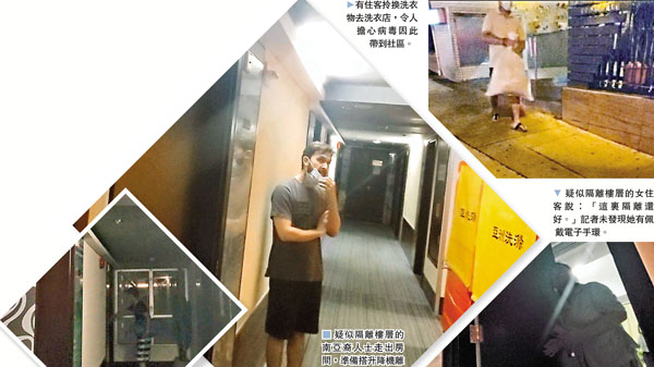 記者買了一份外賣,假扮外賣員跟隨真外賣員一同前往該疑似隔離樓層,目擊該外賣員將外賣放在一間房門口,敲門後便迅速離開,大約半分鐘後有住客開門迅速拿走外賣,然後關門。