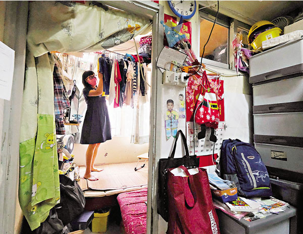 「媽咪,我哋幾時搬屋呀?我瞓個『竇』(床)隻腳已經伸唔直啦!」劏房環境狹窄,容納一家三口並非易事。居於劏房已經20年的黃女士,與家人居於深水埗一個劏房單位,而她一家已輪候公屋近七年,她指兒子雖沒有表達介懷之情,但也知道他羨慕其他同學有屋住。不過,她表示就算曾接受入住公屋的凶宅單位,亦未能抽中,至今上樓無期,只盼政府在即將公布的施政報告中,提出支援他們這些基層巿民住屋的方法,增加公屋單位,以及收緊政策把空置單位收回重新抽籤,加快輪候時間,讓他們能早日獲得編配。