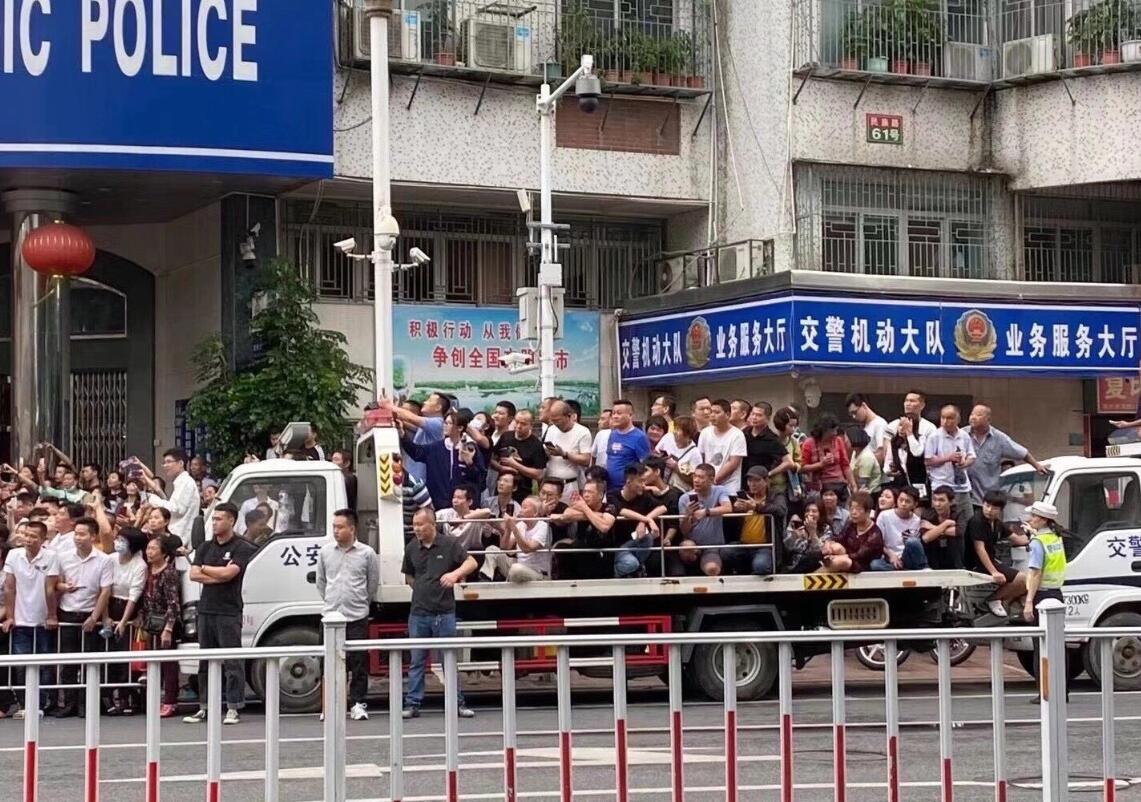 12日晚上,看到習主席到訪潮州牌坊街的新聞後,儘管天仍下着雨,在鄰市的大批汕頭市民還是激動地趕到小公園開埠區,守候主席的到來。當晚不少汕頭市民發出照片,小公園一帶人聲鼎沸,不少民眾自發揮着五星紅旗在那裡執着地等候。及至13日上午,小公園開埠區集結了更多按捺不住激動心情的群眾。有交警邊維持秩序邊笑着對大家說:「我知道,我們都有一顆紅心!但是我們要理智、理智!」