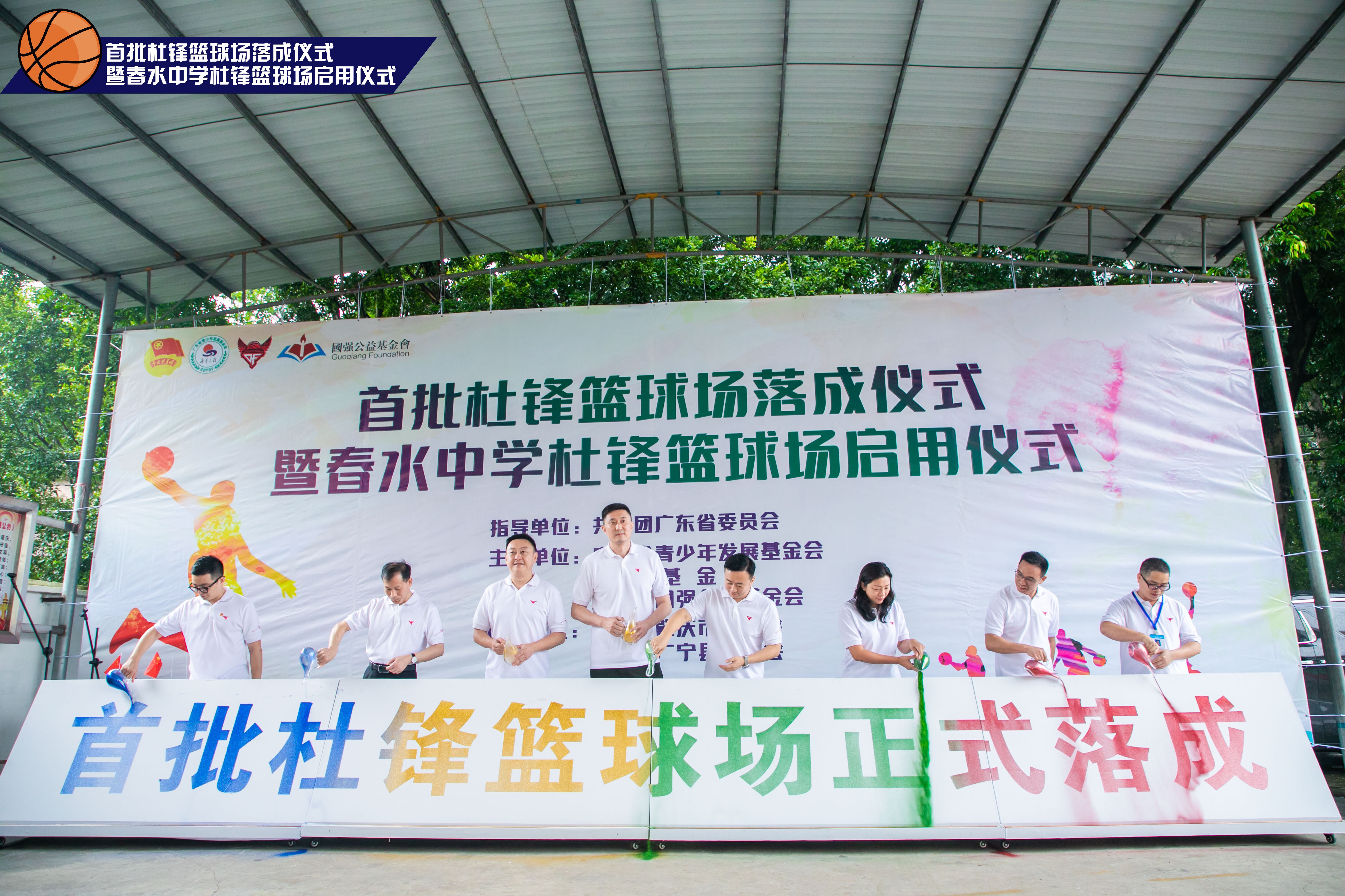 (大文新聞網記者 敖敏輝 廣州報道)15日,在共青團廣東省委員會的指導下,中國男籃主教練、全國青聯常委、廣東省青聯副主席杜鋒與廣東省青少年發展基金會合作成立的「廣東青聯鋒基金」,聯合廣東省青少年發展基金會、碧桂園集團、廣東省國強公益基金會共同發起的公益行動「杜鋒籃球場」落成儀式在肇慶市廣寧縣春水中學舉行。