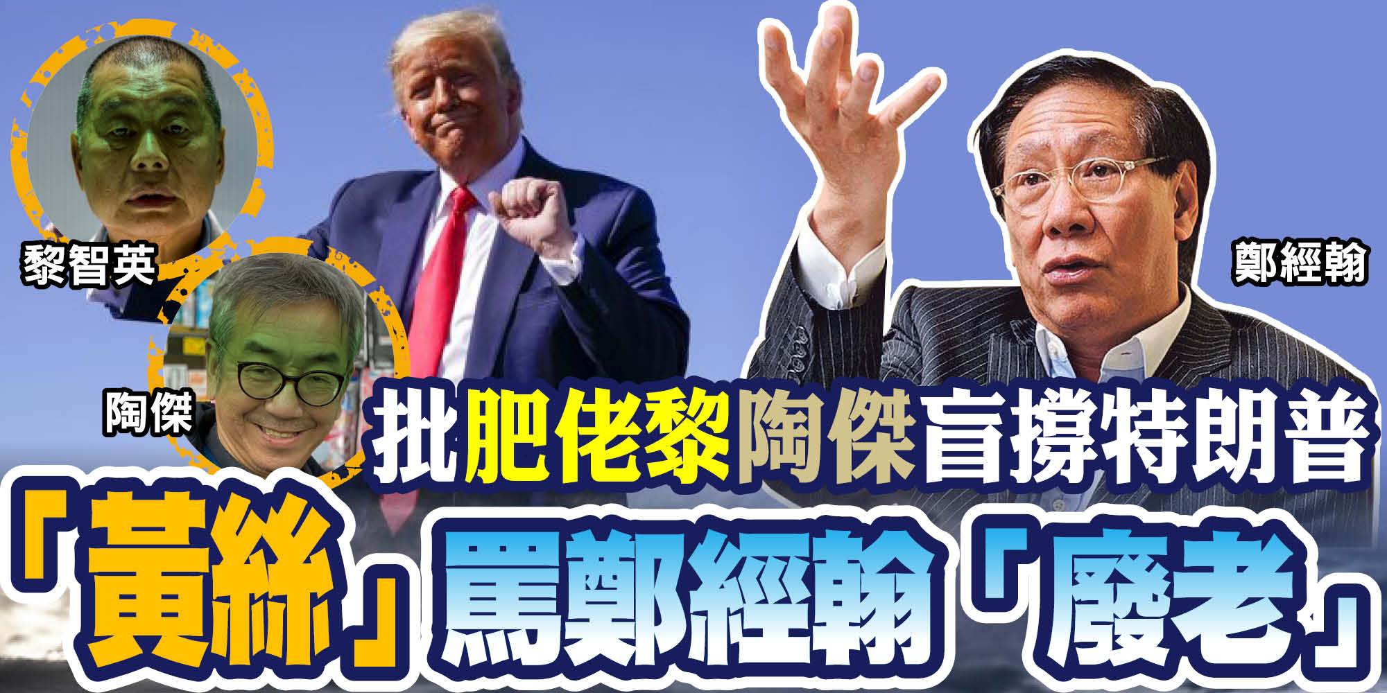 據大公文匯全媒體報道,近期網台「D100」創辦人鄭經翰喺網上撰文話,美國總統大選上特朗普違反民主公義核心價值,鬧佢反民主、反人權。仲喺到批評壹傳媒創辦人肥佬黎(黎智英)同埋時評人陶傑叫一眾KOL唔可以盲撐特朗普,但係就引來一眾「黃絲」大肆評擊,有啲更罵他係「廢老」,「out(過氣)」、認真「進步」、「民主」,非常之可笑!