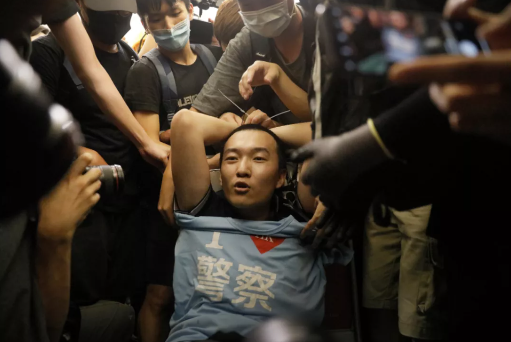 付指示威者擅自從他背包找出一件寫上「我愛香港警察」的淺藍色上衣,並高舉展示。付指該上衣是案發前數天,在市民於警察總部的自發活動上獲參加者送贈。他當時曾向示威者說:「我支持香港警察,你們可以打我了。」示威者則情緒激動,又曾當眾展示他的身份證並嘲諷他,又試圖強行解鎖他的手機。