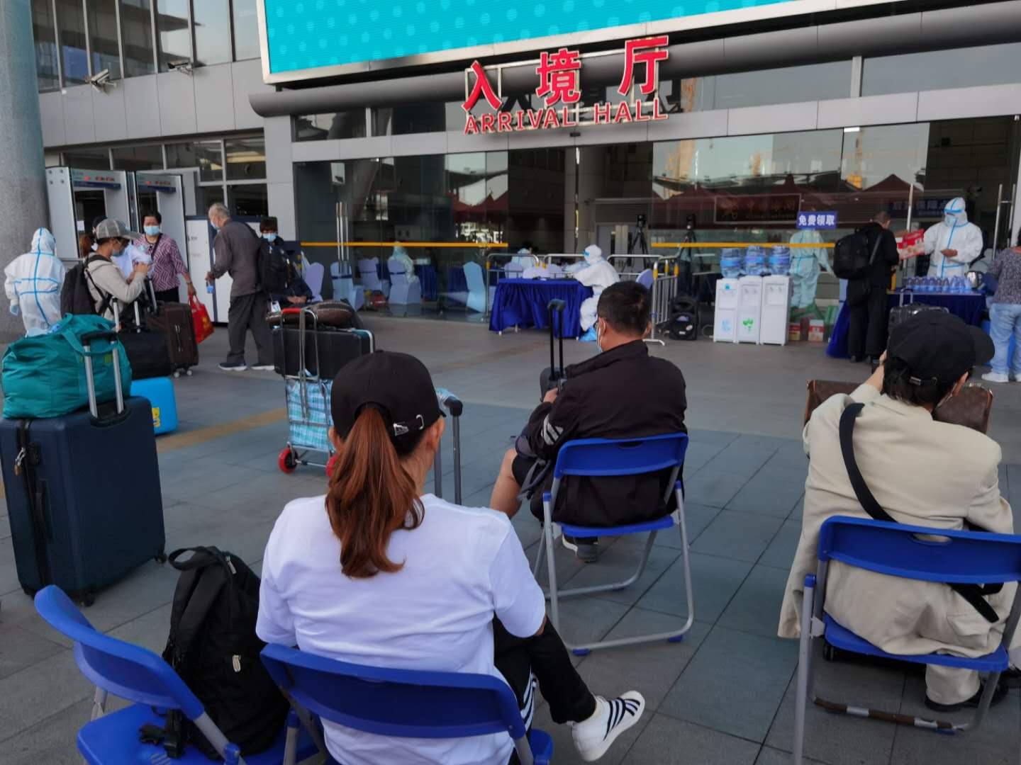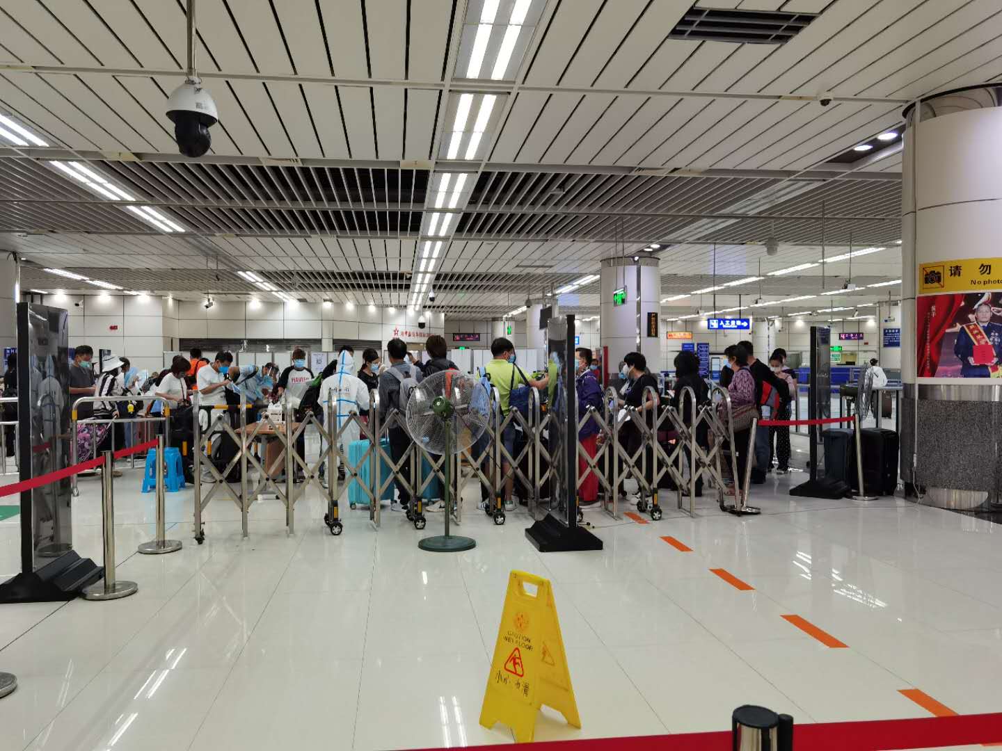 工作人員在查驗各登記資料真確無誤後來,量度體溫,即等候過關,此時大小行李需過X光機。工作人員會電子掃描你手機登陸的個人資料,確保該資料進入深圳防疫大系統,之後便查驗回鄉卡,此時需交入境卡。