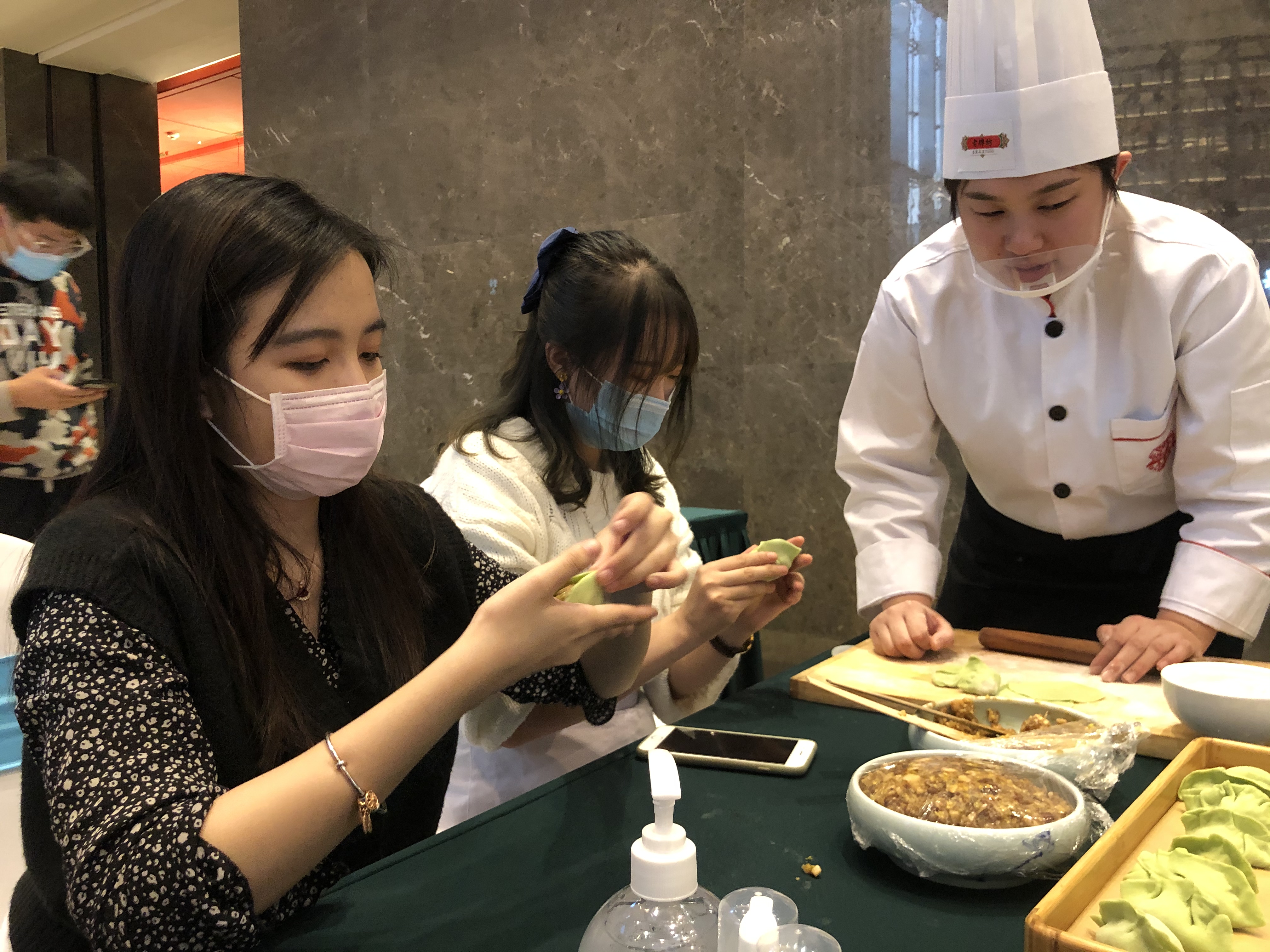 工匠蓑衣黃瓜是一道廚藝功夫菜,考驗的是廚師的刀工。在山東大學讀大一的港生黃春雅就體驗了這個要切600多刀的蓑衣黃瓜,雖然有些廚藝基礎,她依然倍感緊張。黃春雅還體驗了一把烤鴨的製作過程,親自在烤爐前烤制烤鴨。「烤爐前特別熱,烤烤鴨的師傅一定很辛苦。」黃春雅初到山東,通過這樣的體驗,她對魯菜有了更深的了解。讓同學們最開心的環節是一起包山東五彩水餃,學生們分組進行技藝比拼。黃春雅高興的告訴記者,他們小組包的最快,餃子形狀好,得到了酒店大廚的誇獎。