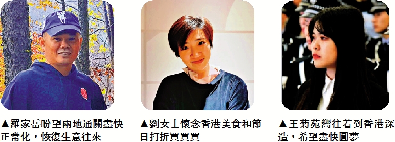 一家香港上市的內地食品公司區域經理羅家岳表示,內地對疫情防控措施嚴格有力,令到內地疫情早已受控,生活和商貿秩序恢復正常。他所在的企業與港業務來往密切,他不時要到香港出差。疫情期間,業務交流一律改為線上進行。他坦言,期望可以粵港兩地都能免除隔離檢疫,但現時香港疫情尚未完全受控,「希望香港再加強,做到應檢盡檢,這樣才可使兩地通關盡快正常化。」